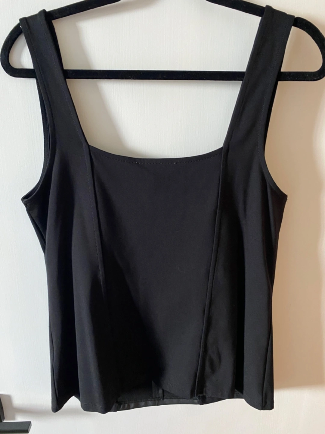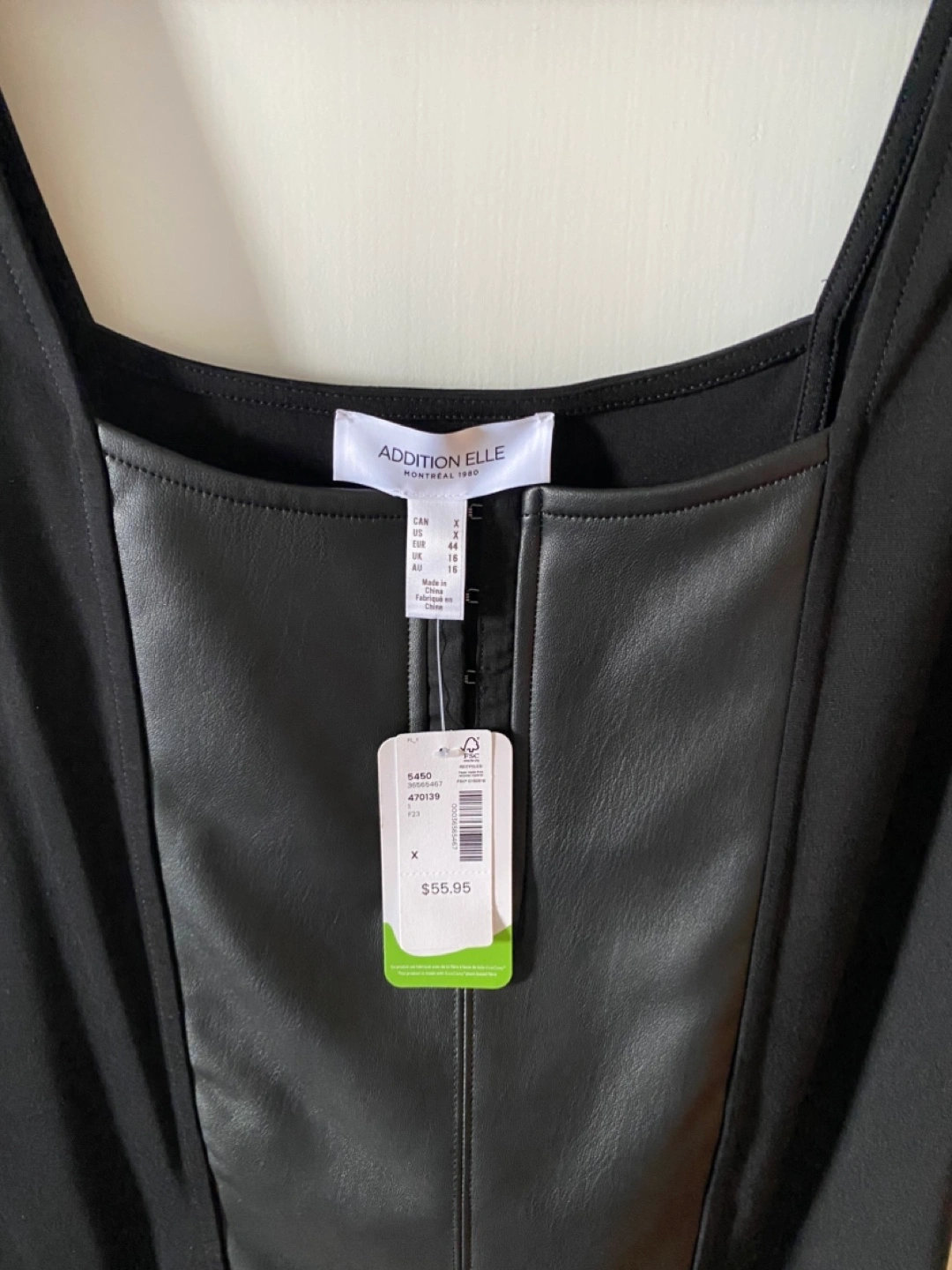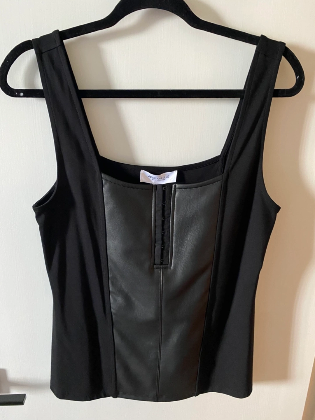 Addition Elle black tank top available in size 2X! The top features a square neckline and a faux leather panel in the front. Originally bought for $55.95
