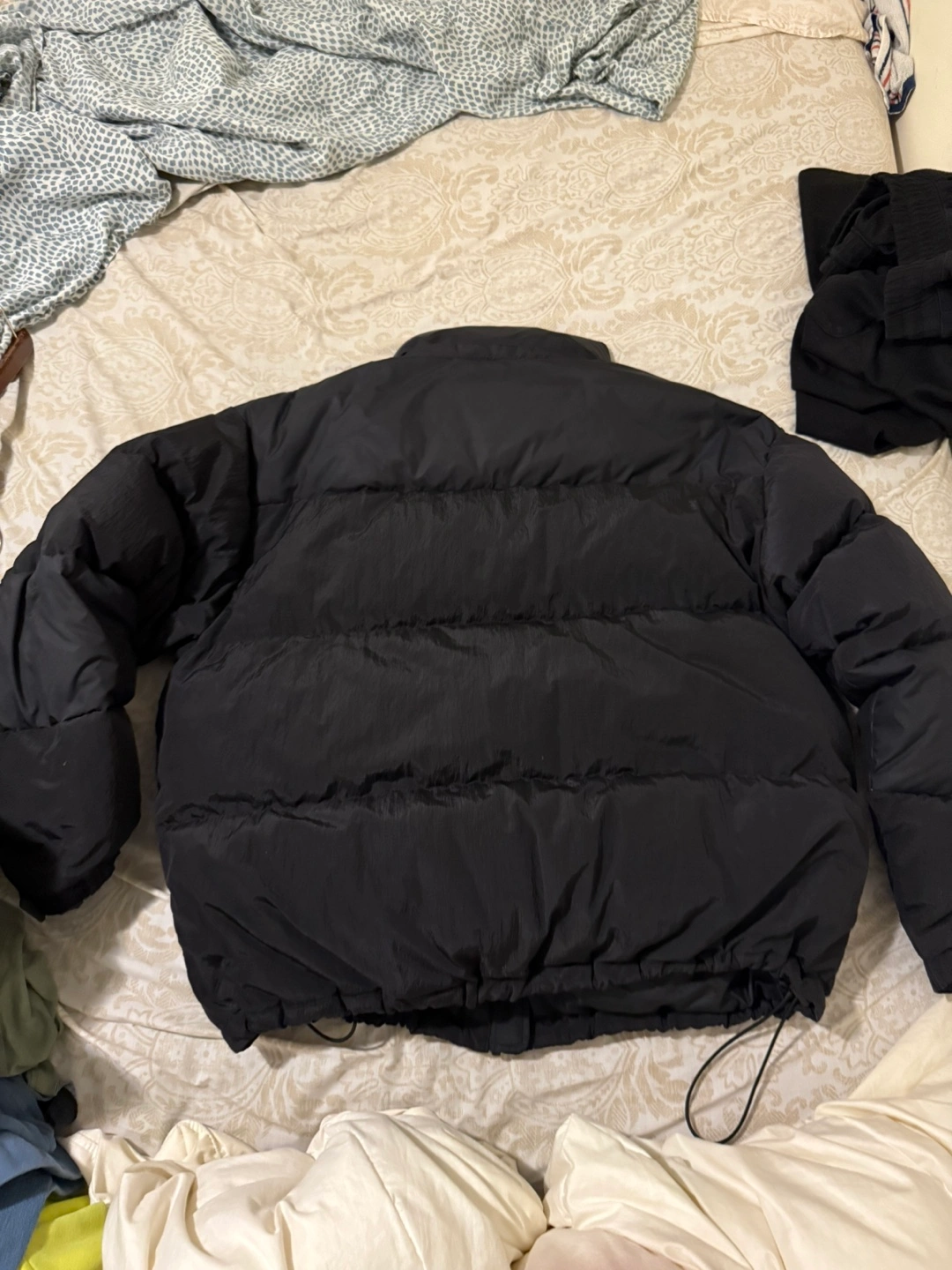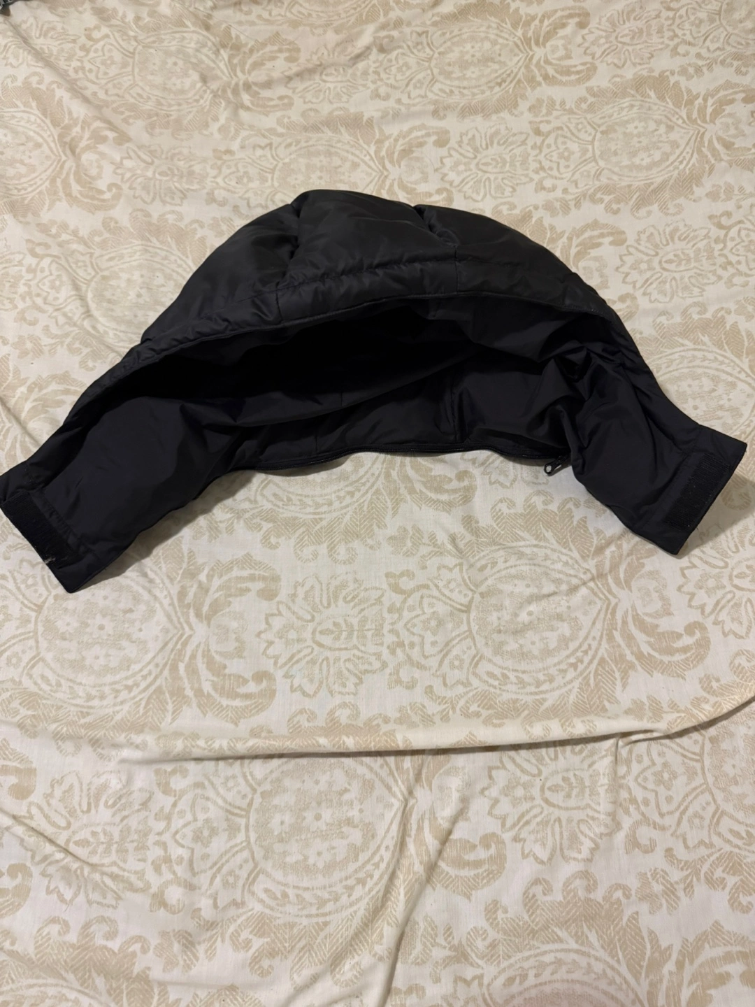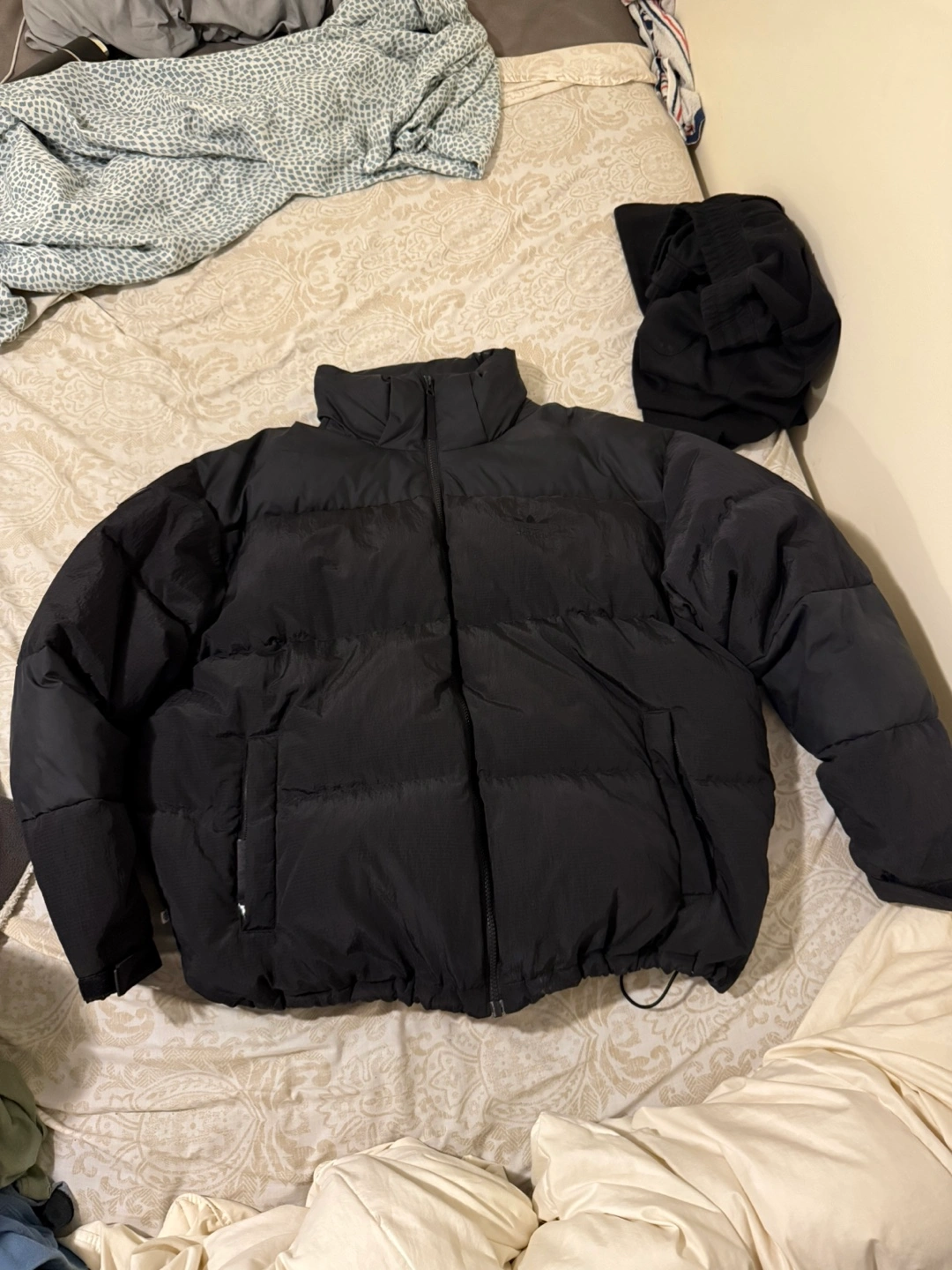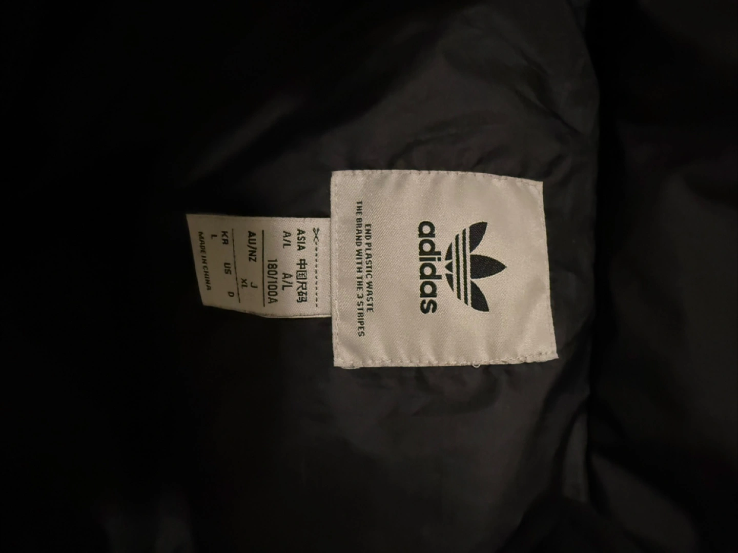 Selling a gently used Adidas black puffer jacket. It's a size L and filled with goose down, so it's super warm and cozy for the Canadian winter! The jacket is made of 88% polyamide and 12% polyester for the body and lining, and 100% recycled polyester for the interlayer. Perfect for staying stylish and warm!