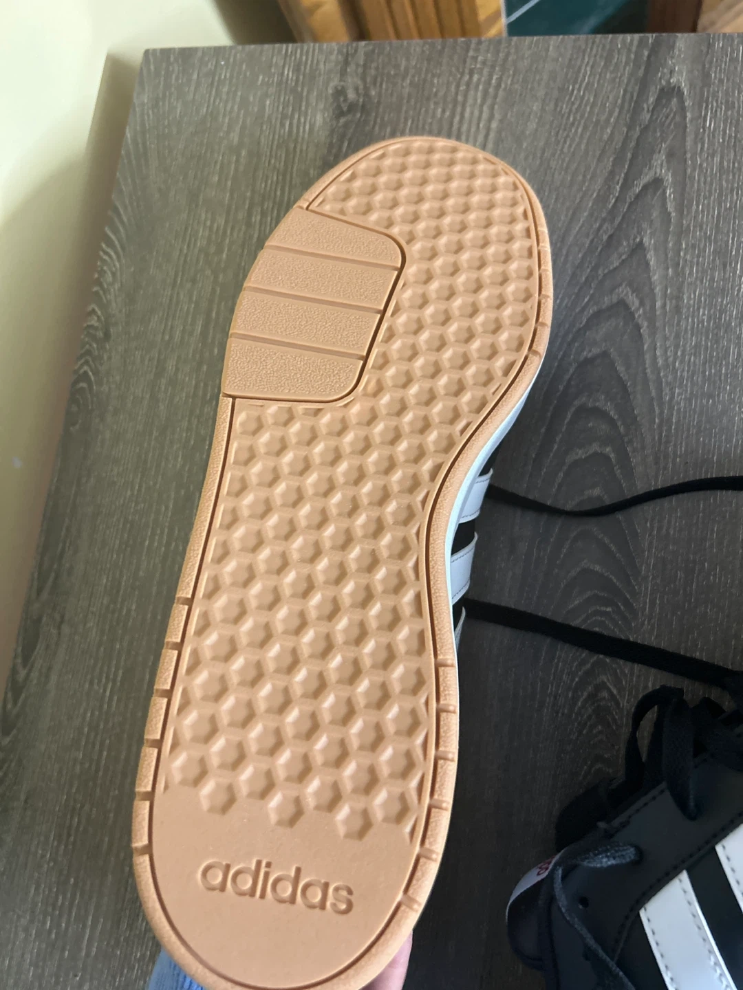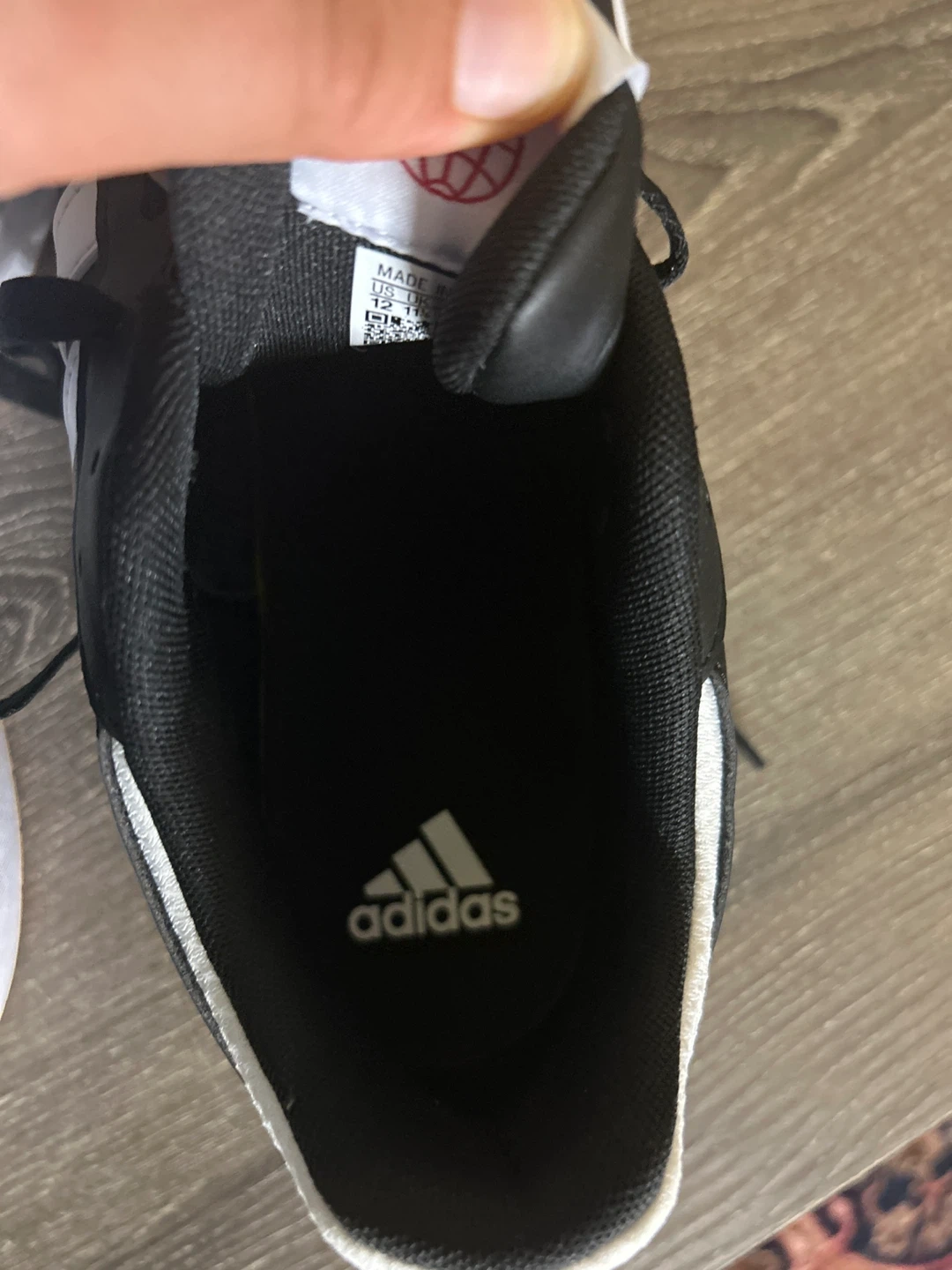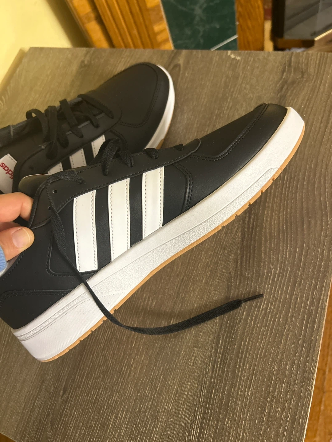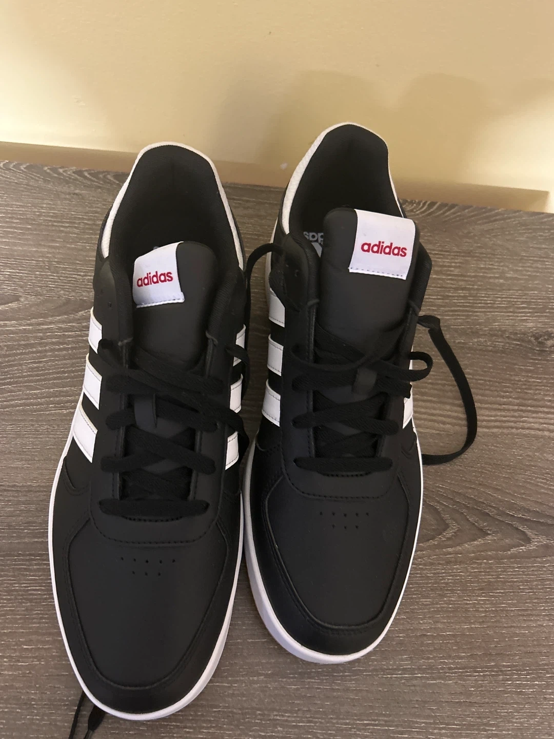 Selling a pair of Adidas Breaknet shoes in black and white. They are in great condition and are a size US 12. The soles are a light brown colour.