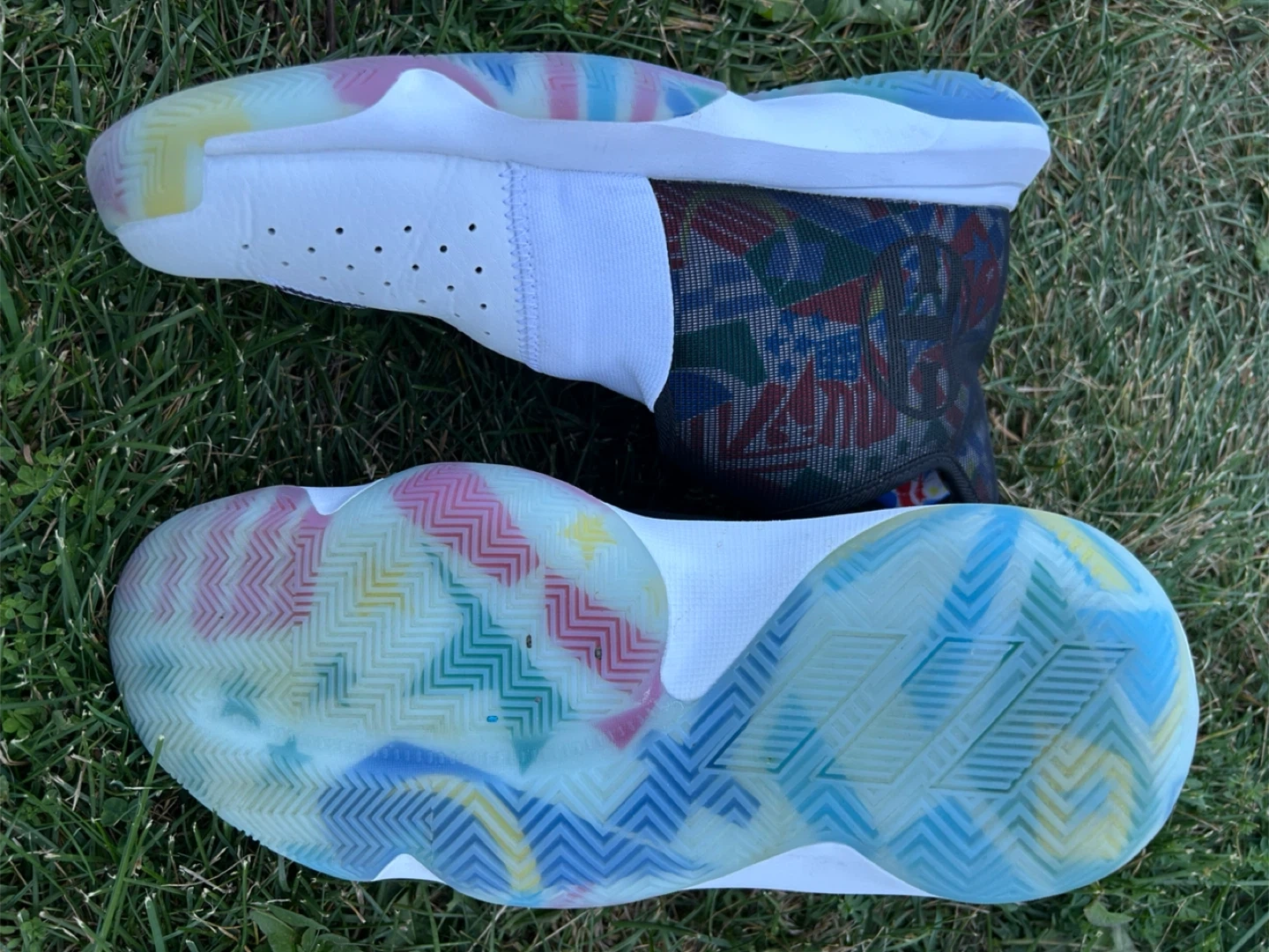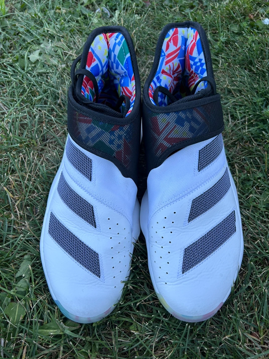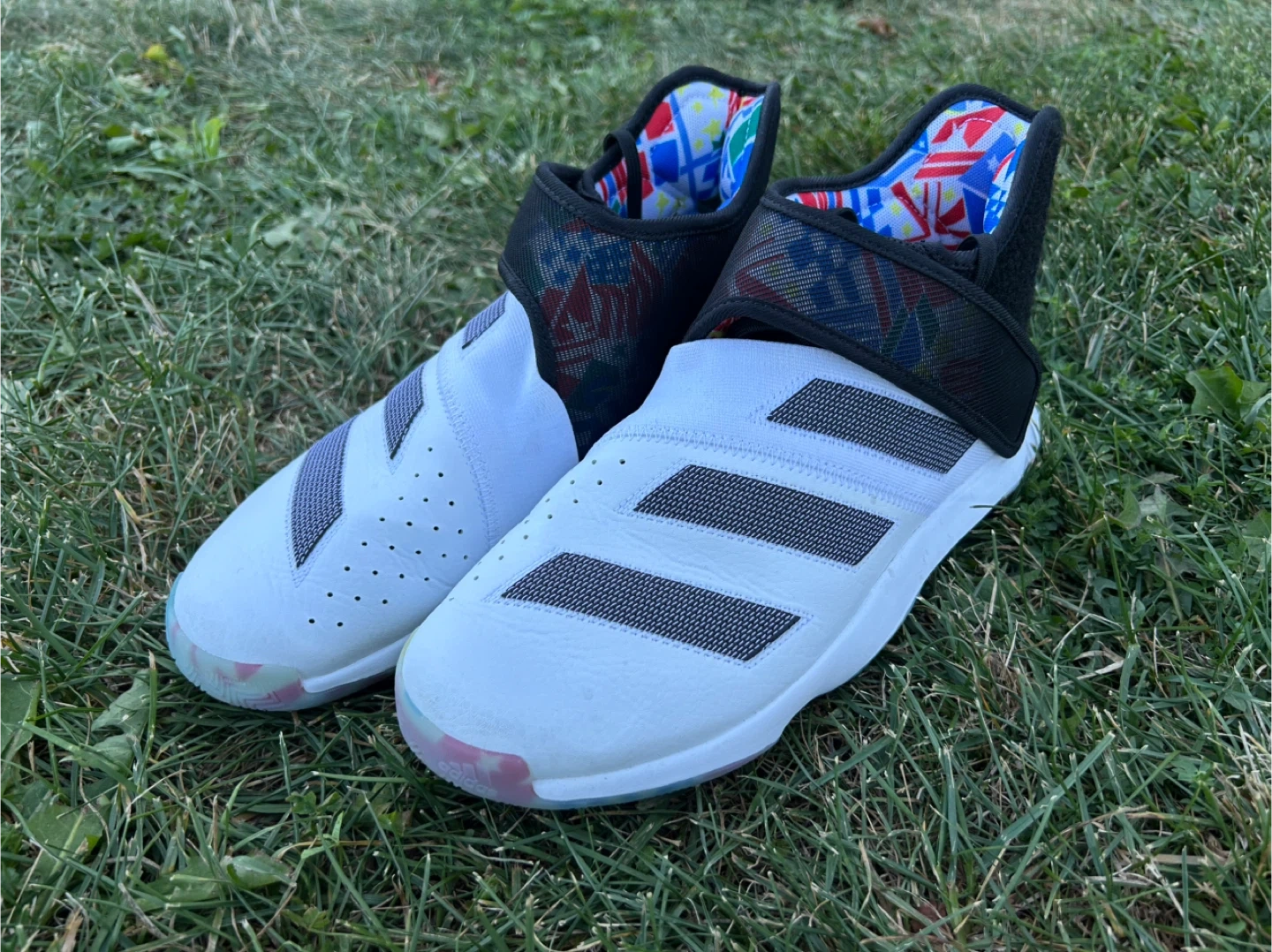 Selling a pair of Adidas Harden B/E 3 basketball shoes men size US 8 They feature a white and black colour scheme with colourful accents on the sole and inner lining. These shoes are in great condition and ready for a new home!