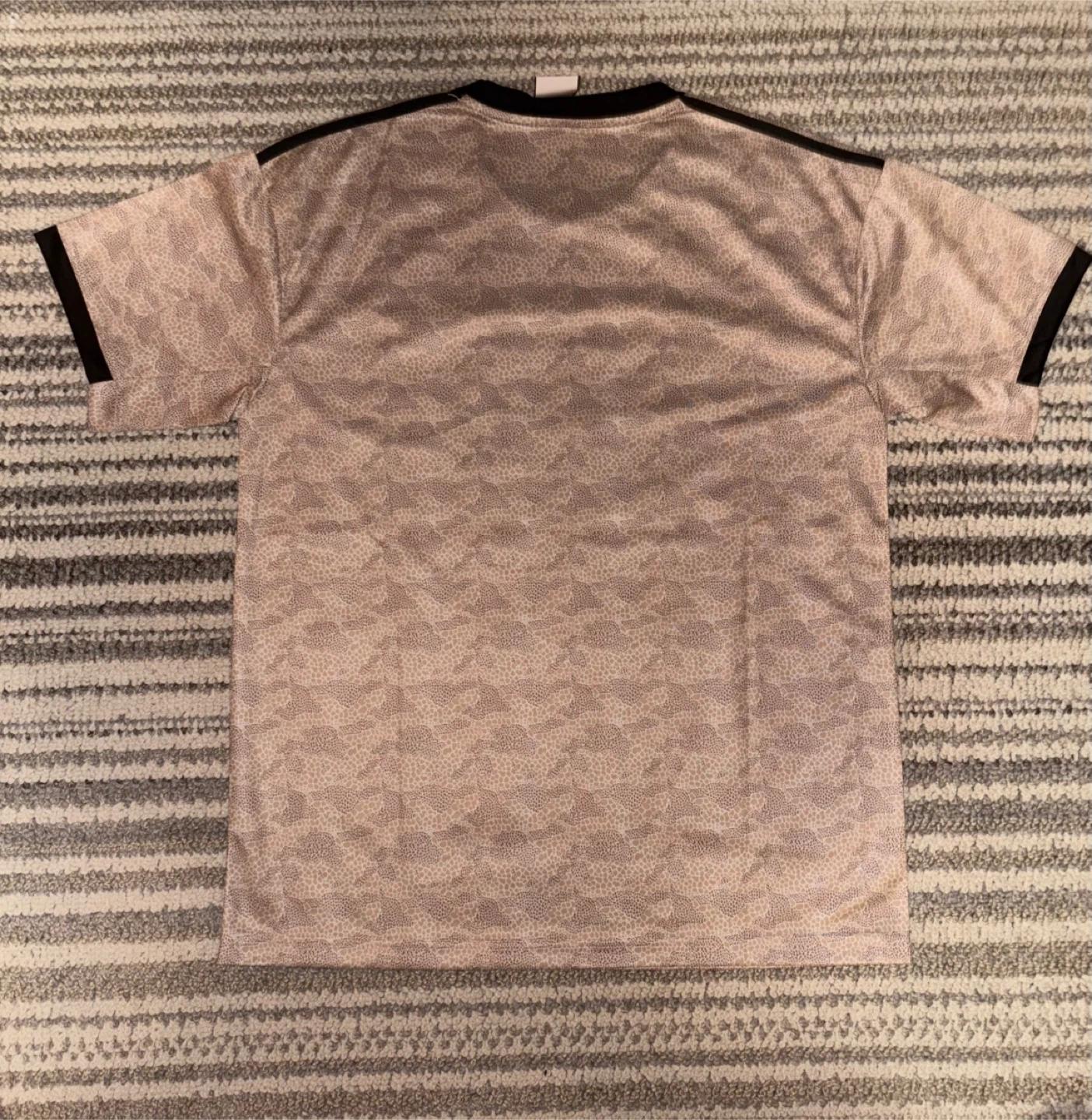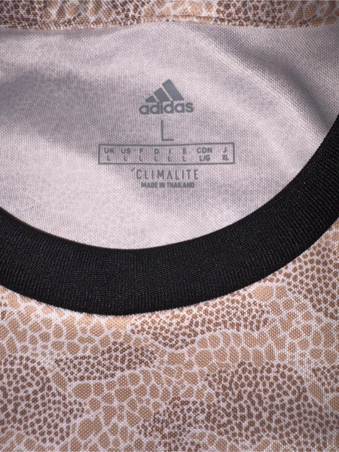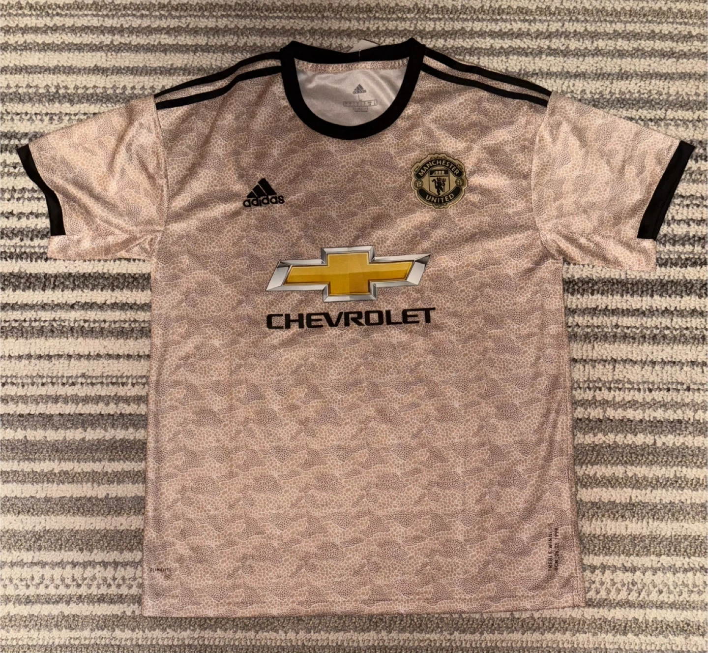 Selling an Adidas Manchester United 2019 away jersey in size L. It features the Chevrolet logo and Adidas stripes on the shoulders. The jersey is made with Climalite fabric.