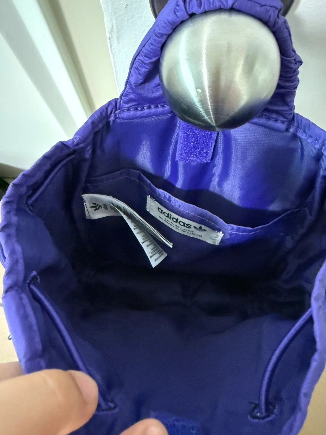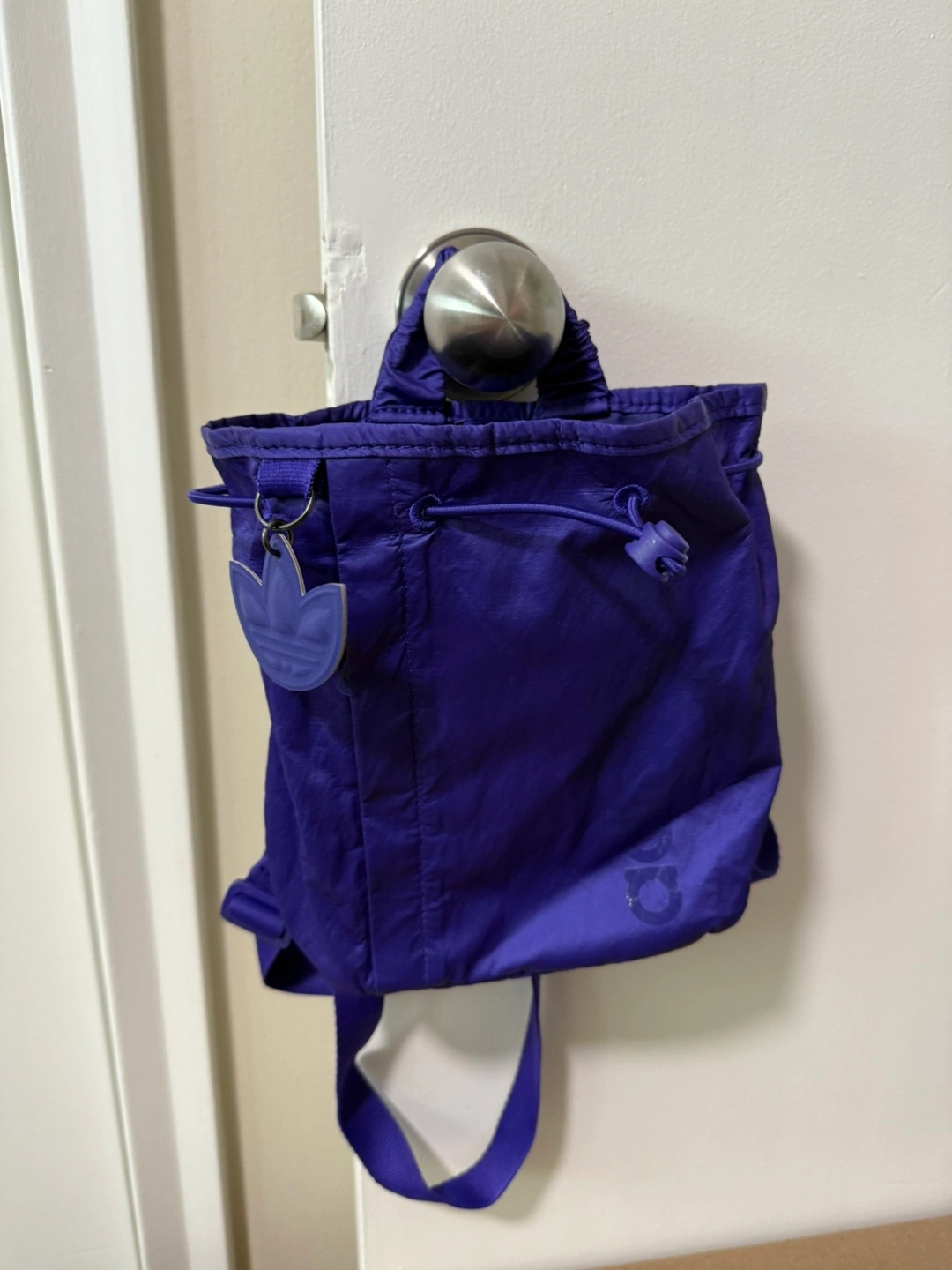 ✨ Elevate your day in style! ✨ This chic adidas mini bucket backpack may be small in size, but it makes a big statement with its iridescent satin-like shine. Barely used and in excellent condition – perfect for carrying your essentials with flair. ✔️ Compact but spacious enough for everyday must-haves ✔️ Front pouch for quick-grab items ✔️ Bungee closure for an easy, sporty vibe ✔️ Lightweight & trendy – pairs with any outfit 📏 Dimensions: 3.5” x 6” x 8.5” (2.75 L volume) 🖤 Made with polyurethane shell + recycled polyester lining 💫 Stylish, functional, and super fun – ready to go anywhere with you! 📍 Pick up only