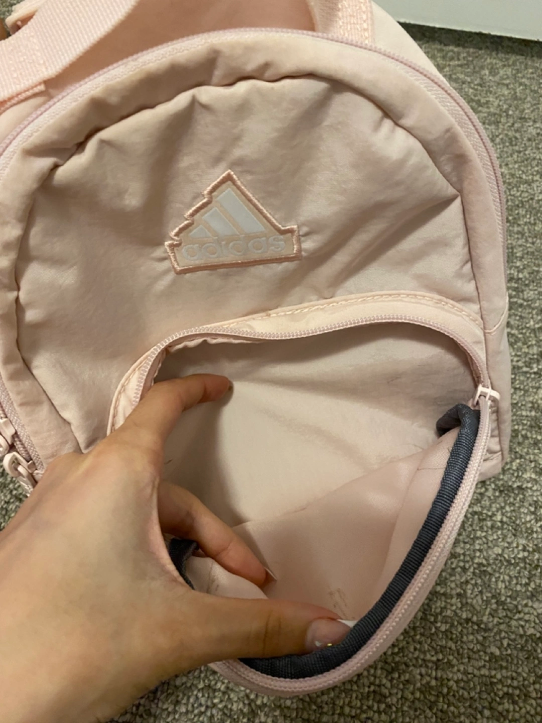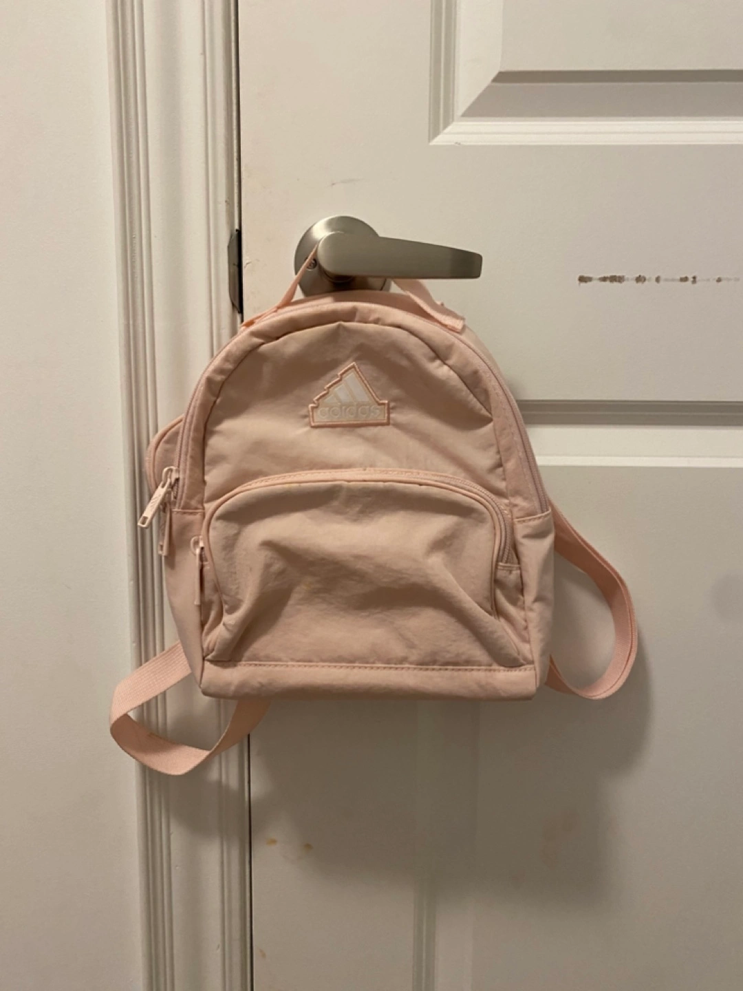 This is an Adidas mini backpack in a cute pink colour! It's perfect for carrying your essentials. It has a small coin purse attached, and the inside is lined with grey mesh. It's in great condition and ready for a new home! Original price $40 Pickup Only! Serious DM only. Accept Cash & E-transfer.