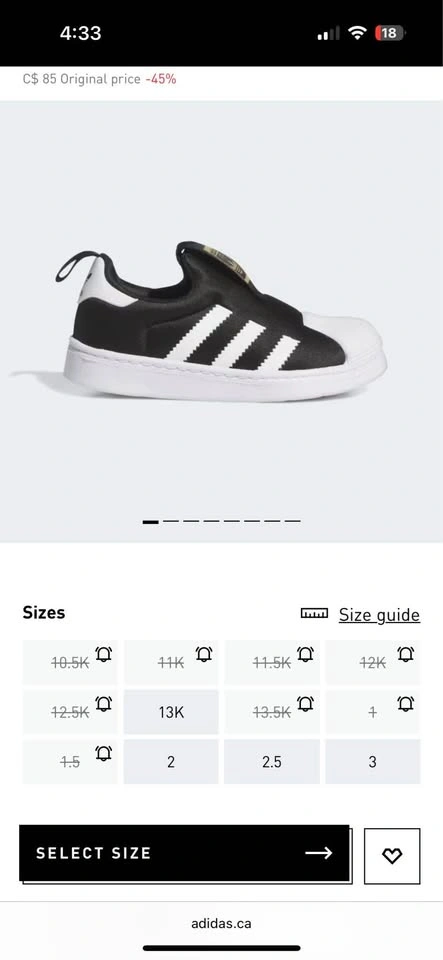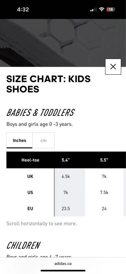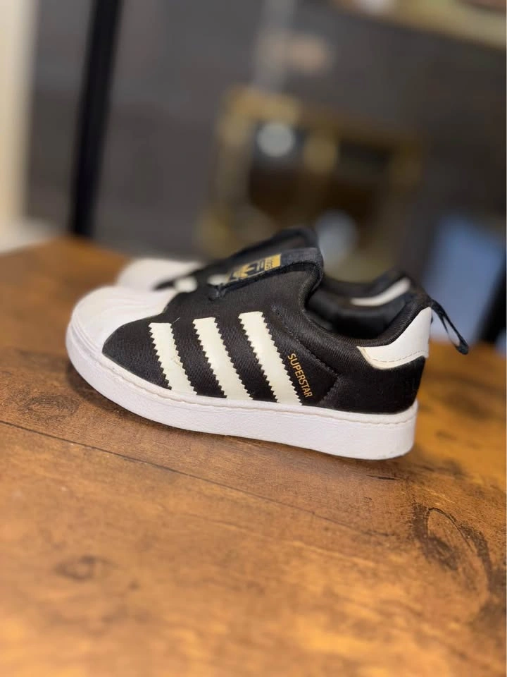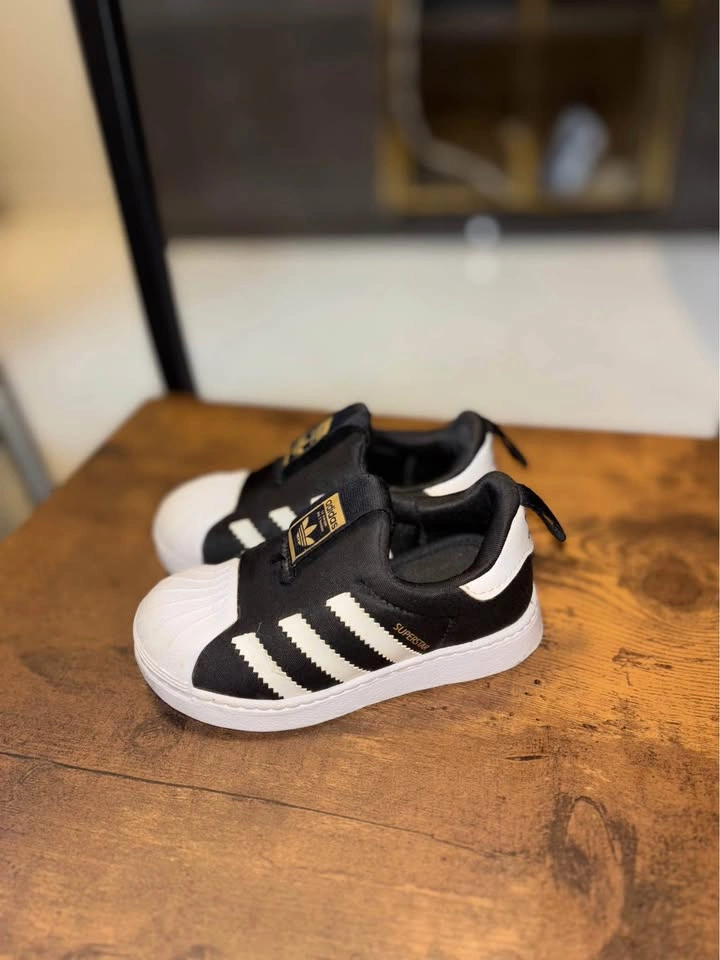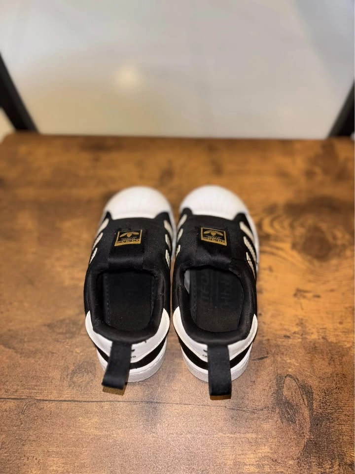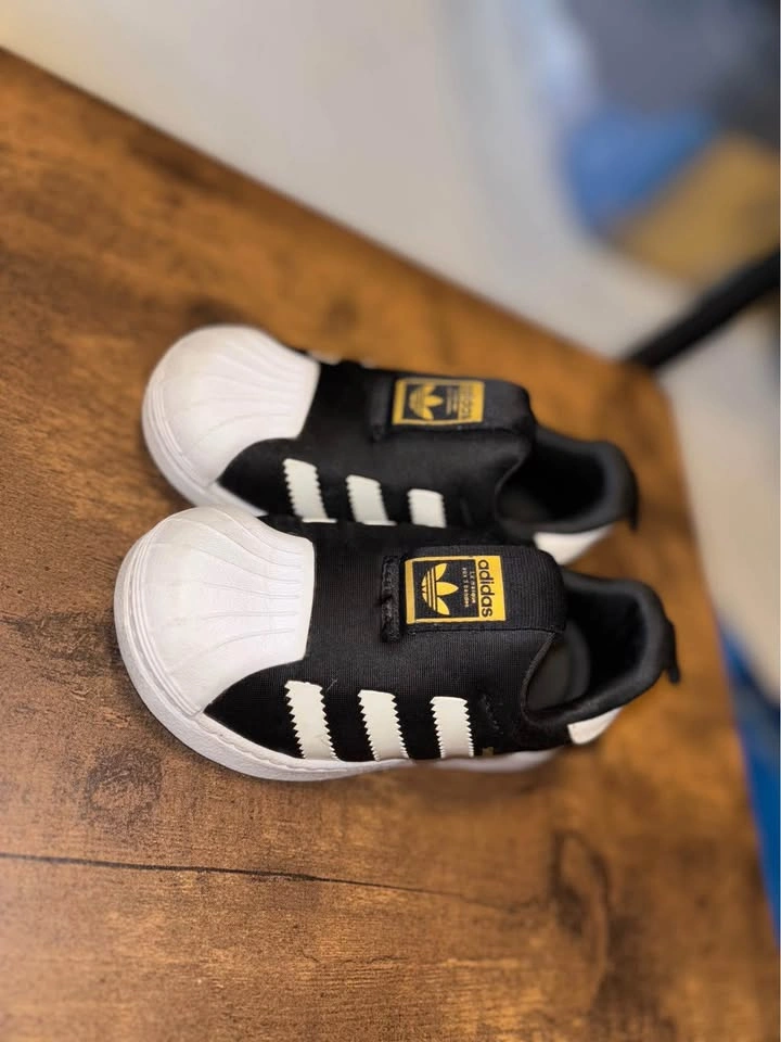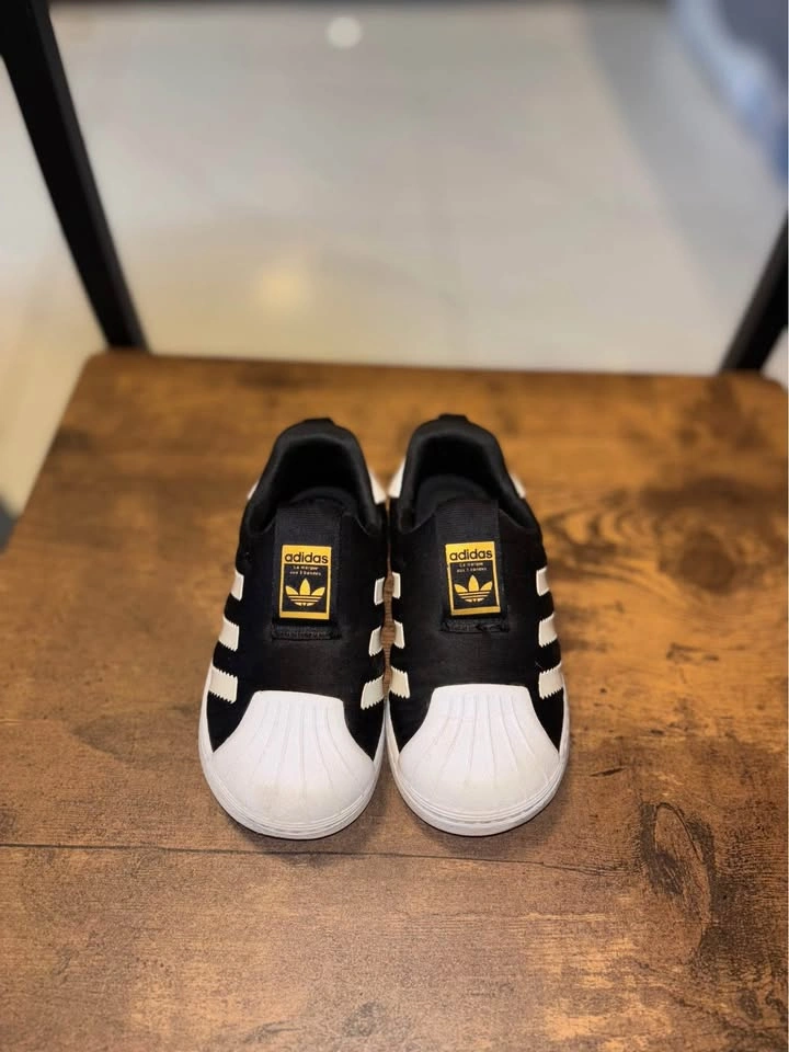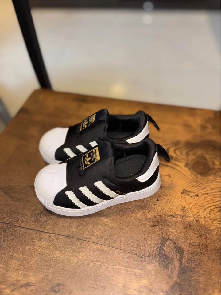 Size guide posted in the post!!! Toddler Adidas (Product colour: Core Black / Cloud White / Cloud White/STYLE: SUPERSTAR 360 SHOES) Too small for my daughter, basically brand new. (I take care of my kids shoes!!) No use for them!!! Paid 85$ originally/ASKING 40$ PICK UP ONLY