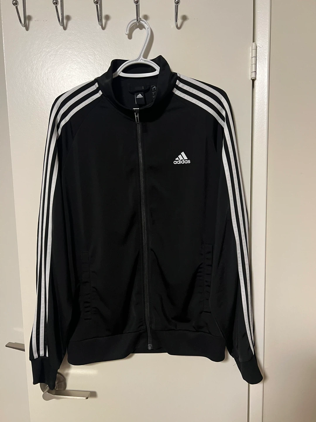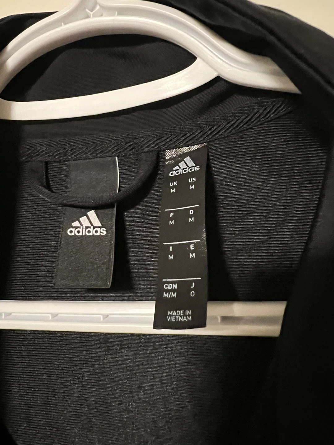 Adidas black track jacket in size M. It's in great condition and ready for a new home. Perfect for workouts or just casual wear!