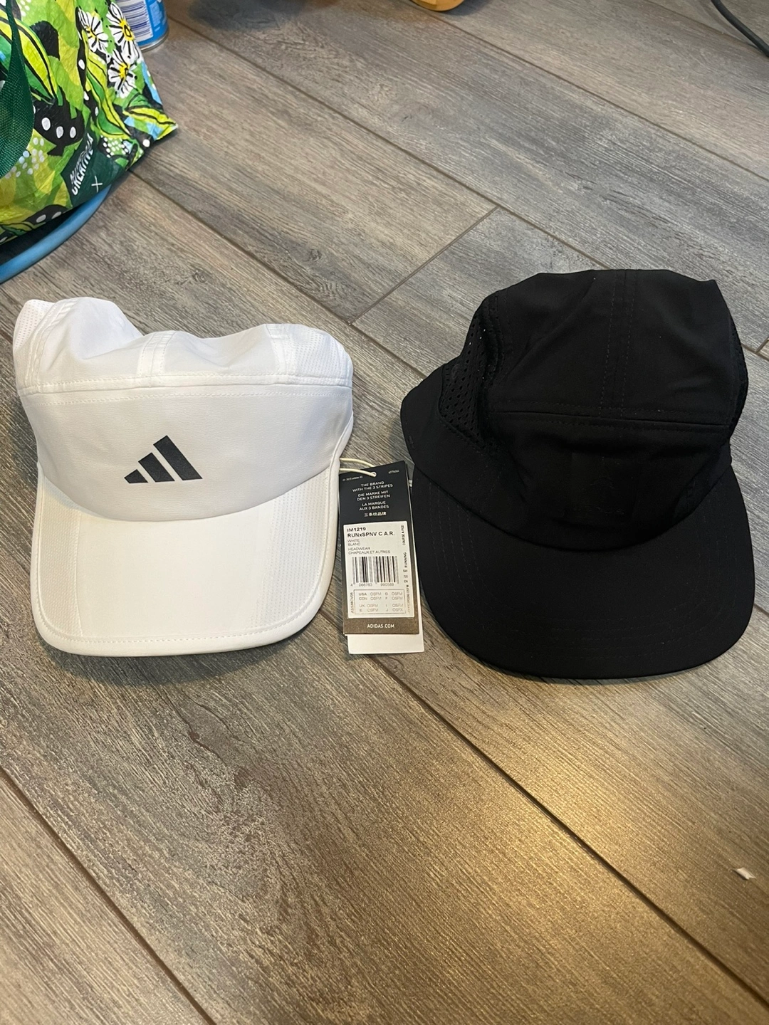 🔥Get both running cap for only $35 The Adidas cap alone is $45 plus tax. cheaper and get a free cap! ✅Adidas white running cap Brand new with tag! ✅Woods black 5 panel running cap Used. Good condition. Both are adjustable straps. Breathable fabric. Great for sports and casual wear. RFS: Letting go of some of my running caps