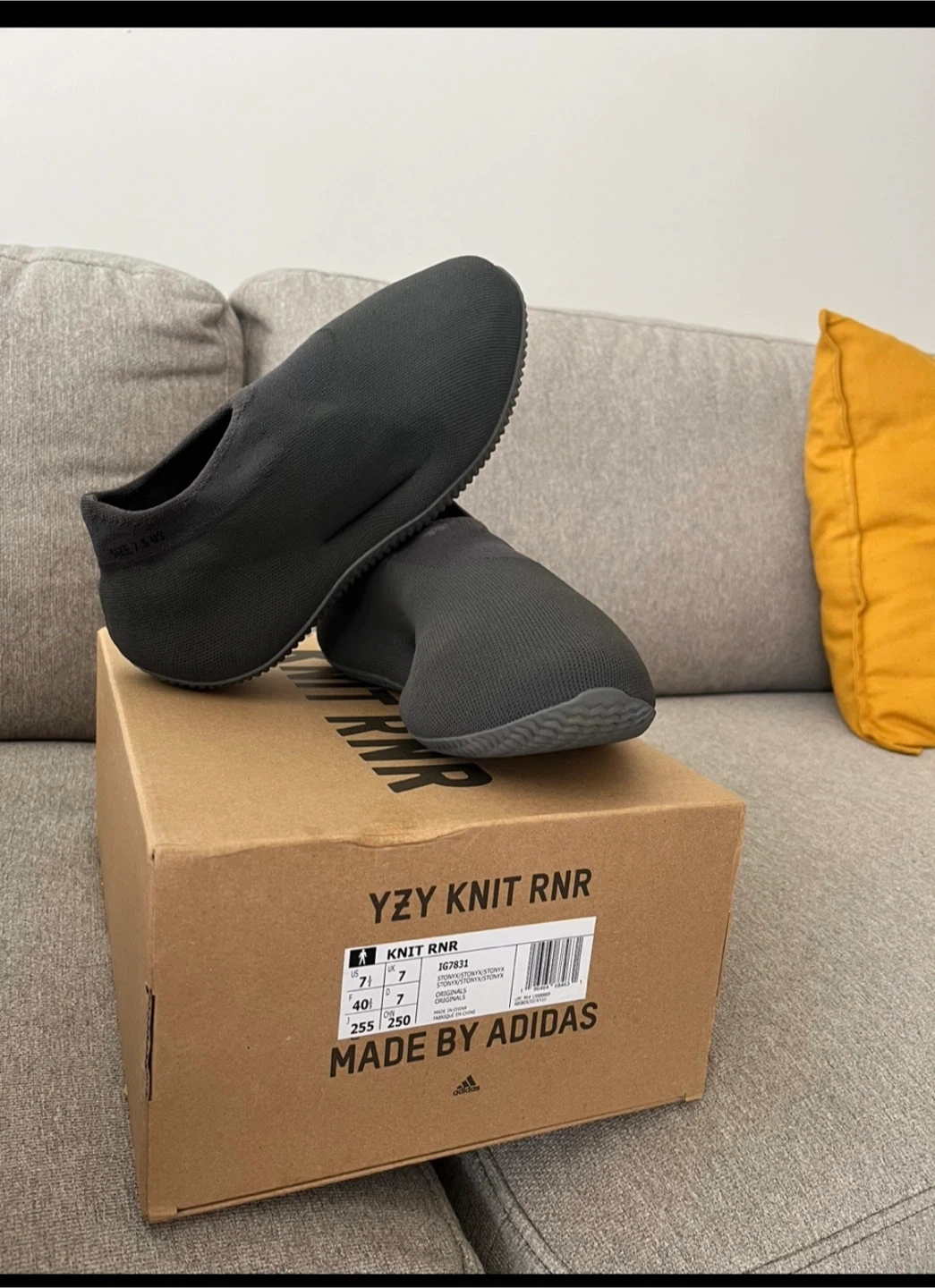 Selling a pair of Adidas Yeezy Knit RNR in size 7.5 US. These are in great condition and come with the original box! The colour is a versatile dark grey, perfect for everyday wear Selling these at a really low price so please no negotiations further.
