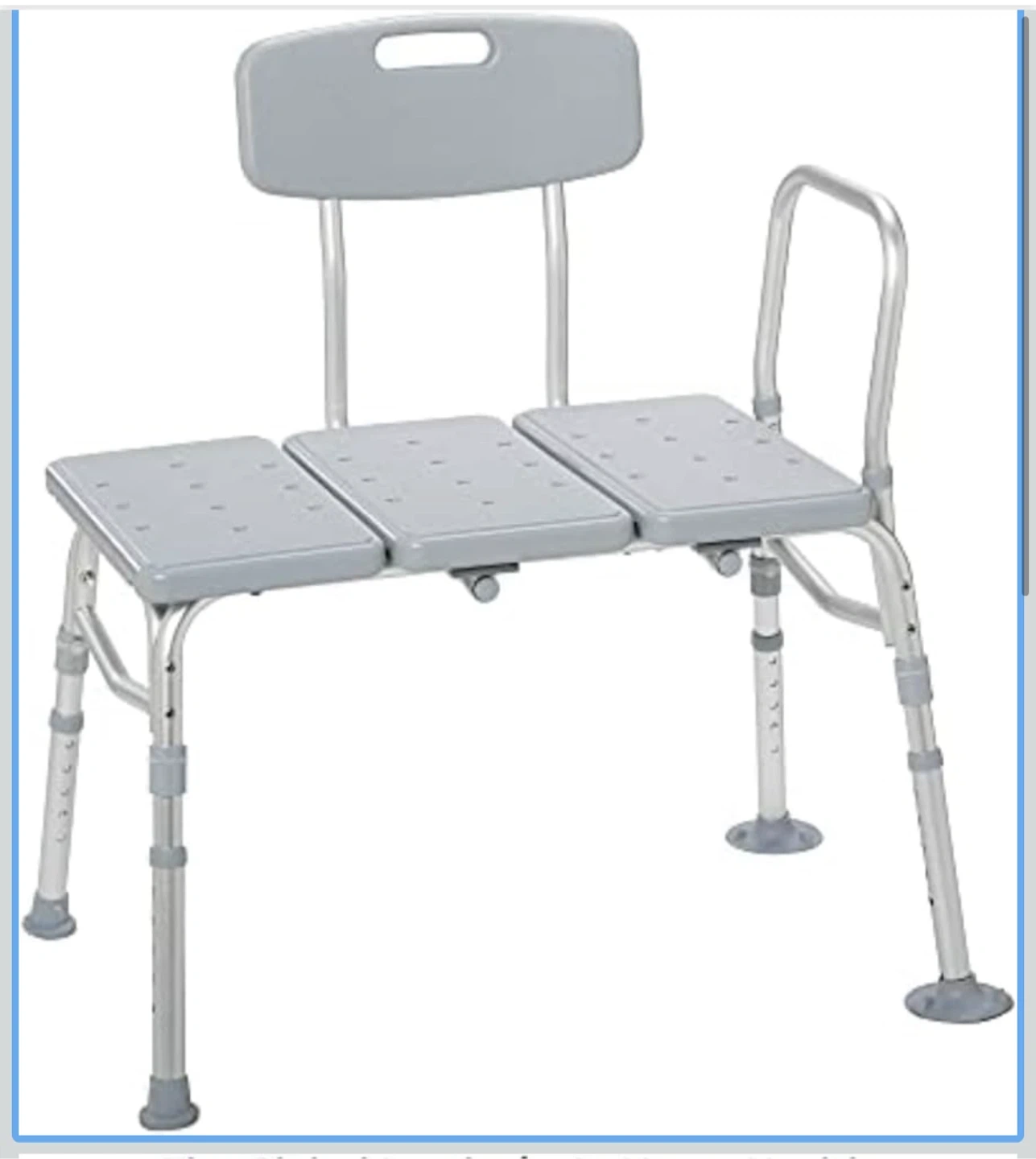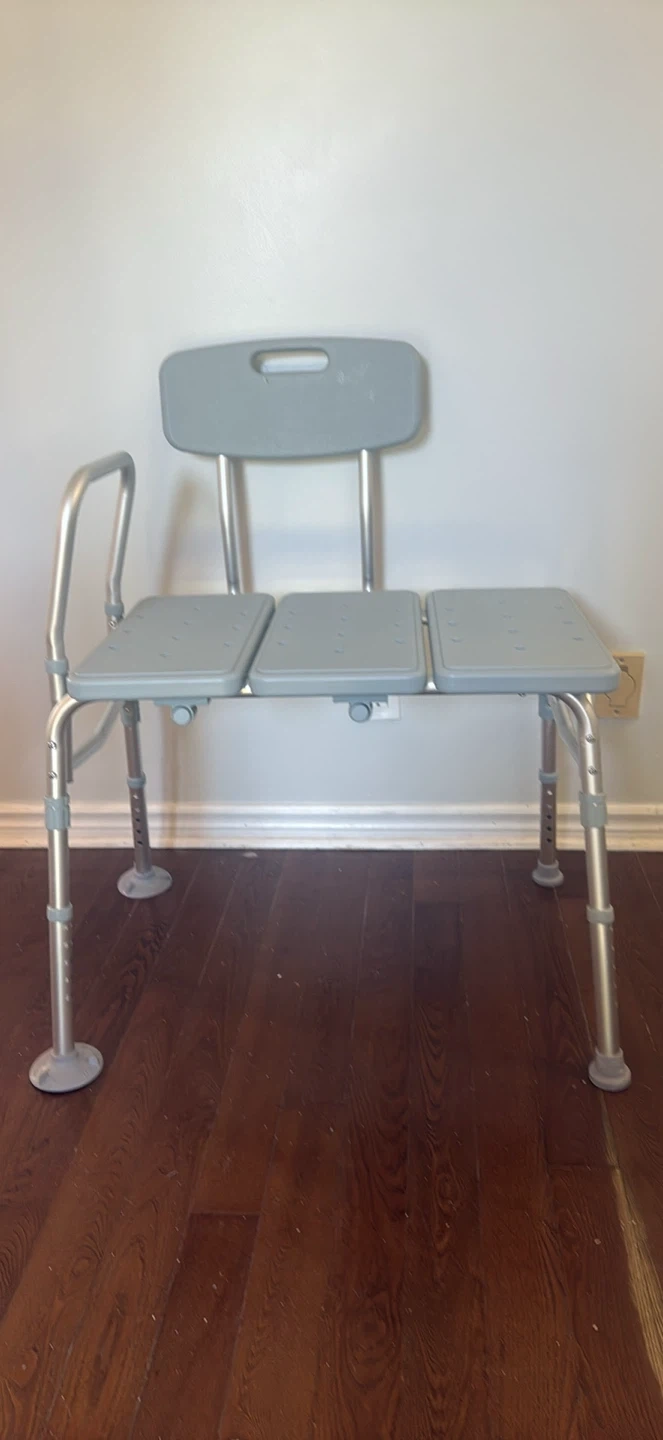 Selling a bath transfer bench with a backrest. It's adjustable for different heights, making it easy to get in and out of the tub. Great for anyone who needs a little extra support in the bathroom! Drive Medical Shower/Tub Transfer Bench With unique "dual column" extension legs Weight Capacity: 400 lbs Locking suction cups provide added safety Connecting back, legs and arm