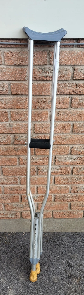 Selling a pair of adjustable crutches. They are in good condition. The height is adjustable to ensure a comfortable fit.