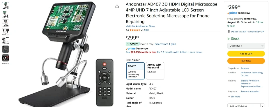 Selling used digital microscope Adonestar Ad407 comes with the stand, screen, main lens, remote, lights and power cable. let me know if you have any questions. looking for quick sell. not interested in trades or shipping.