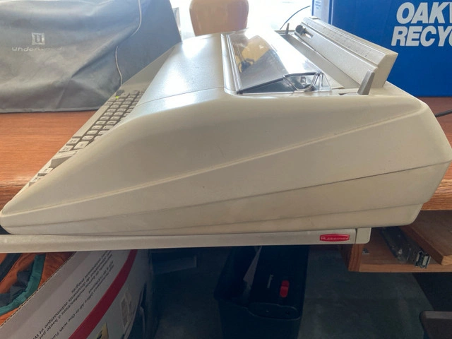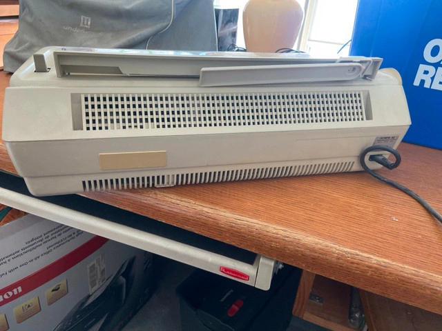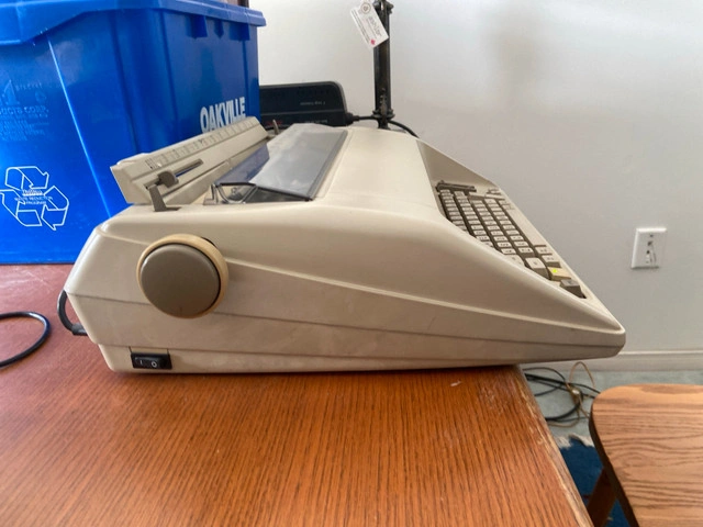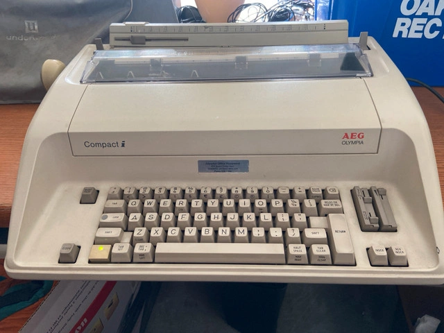 This is an AEG Olympia Compact 1 Typewriter, a reliable machine for all your typing needs. Please note that this is a used item, but it's in good working condition, ready to bring a touch of vintage charm to your documents. Here are some of its features: * Brand: AEG Olympia * Model: Compact 1 * Type: Electric Typewriter I estimate the value of this item to be around $100, given its condition and the going rates for similar typewriters on Kijiji. If this ad is still up, then the typewriter is still waiting for its new home.
