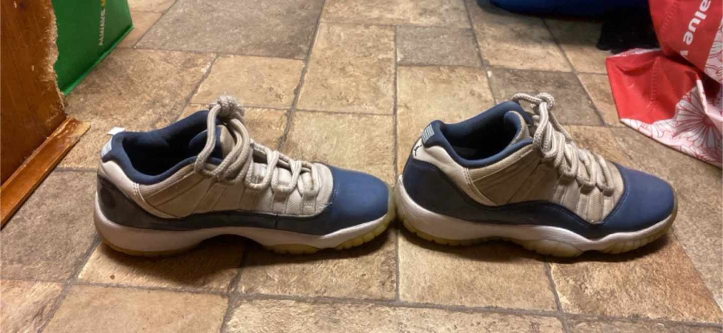 Selling a pair of Air Jordan 11 Retro Low shoes in a cool blue colour! They show some signs of wear on the soles, but the uppers are in good shape. Great for casual wear or adding to your sneaker collection no box