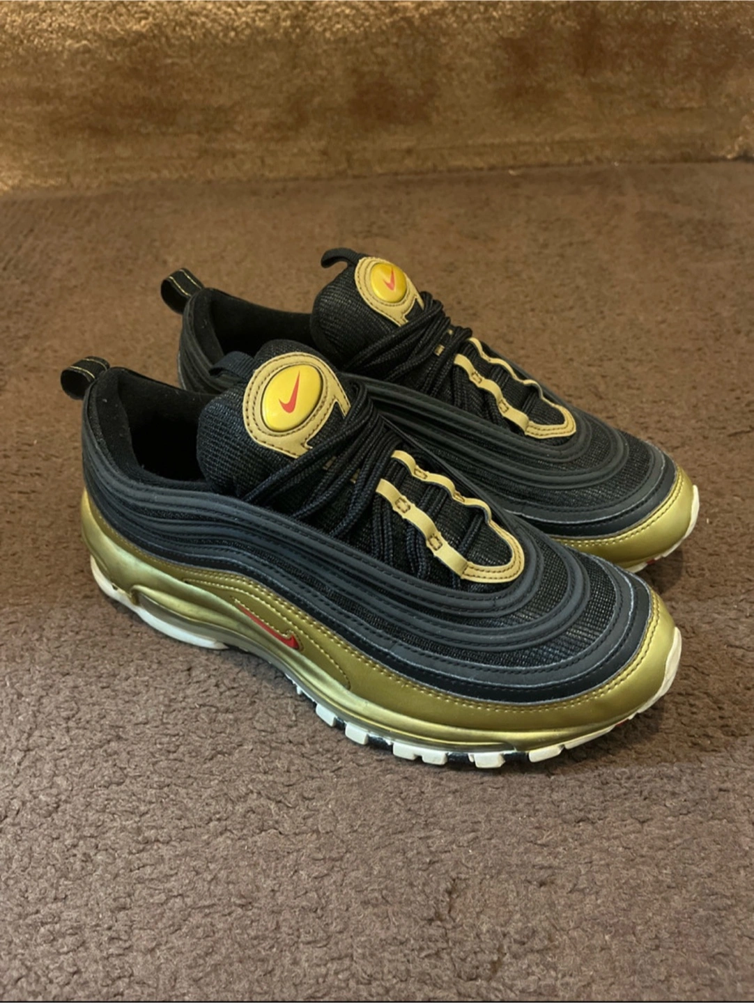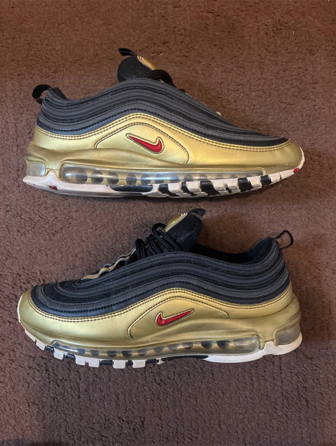 NIKE Air Max 97 QS ‘B-Sides Metallic Gold’ – US 8 Used but in good condition - worn a handful of times. Uppers are clean with minimal creasing, soles show light wear. No box included. Iconic metallic gold colorway from the limited ‘B-Sides’ release – a solid addition for any Air Max fan. PICK-UP ONLY – located in [ Toronto, Ontario - Rexdale Area]. No trades or shipping.