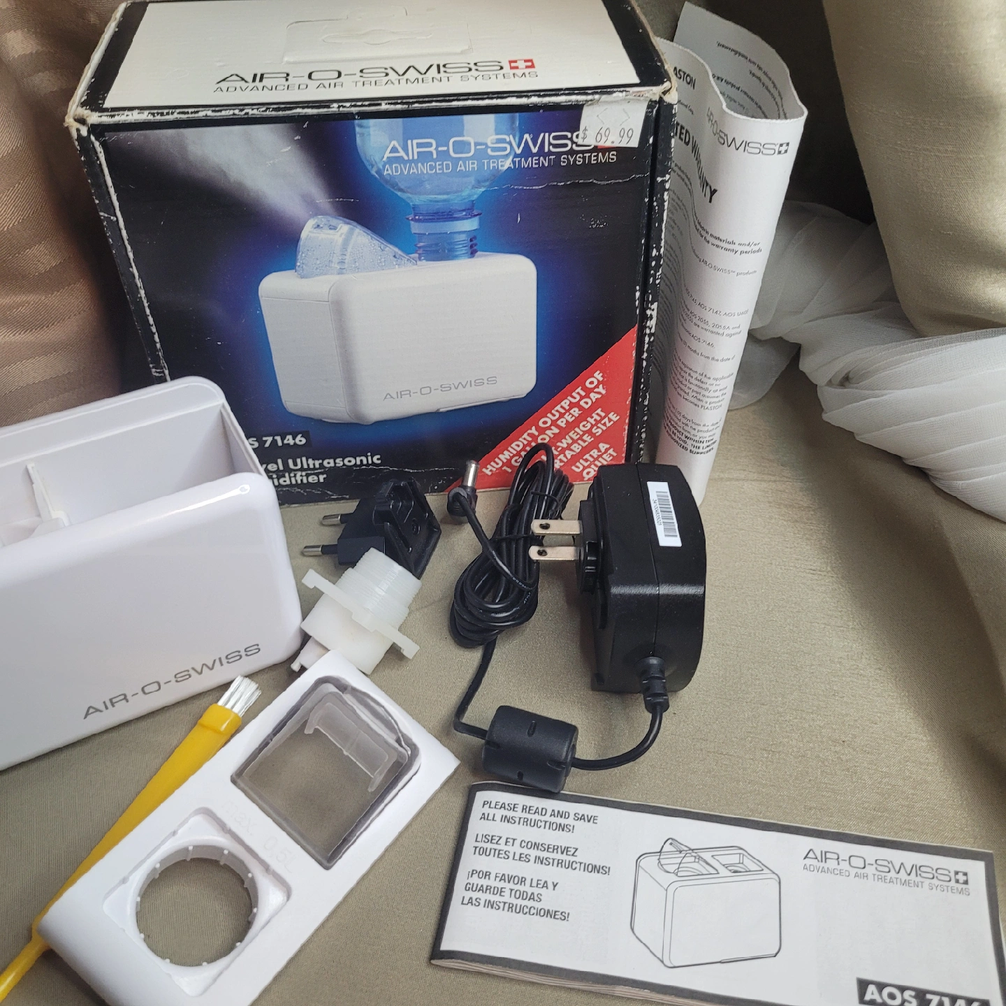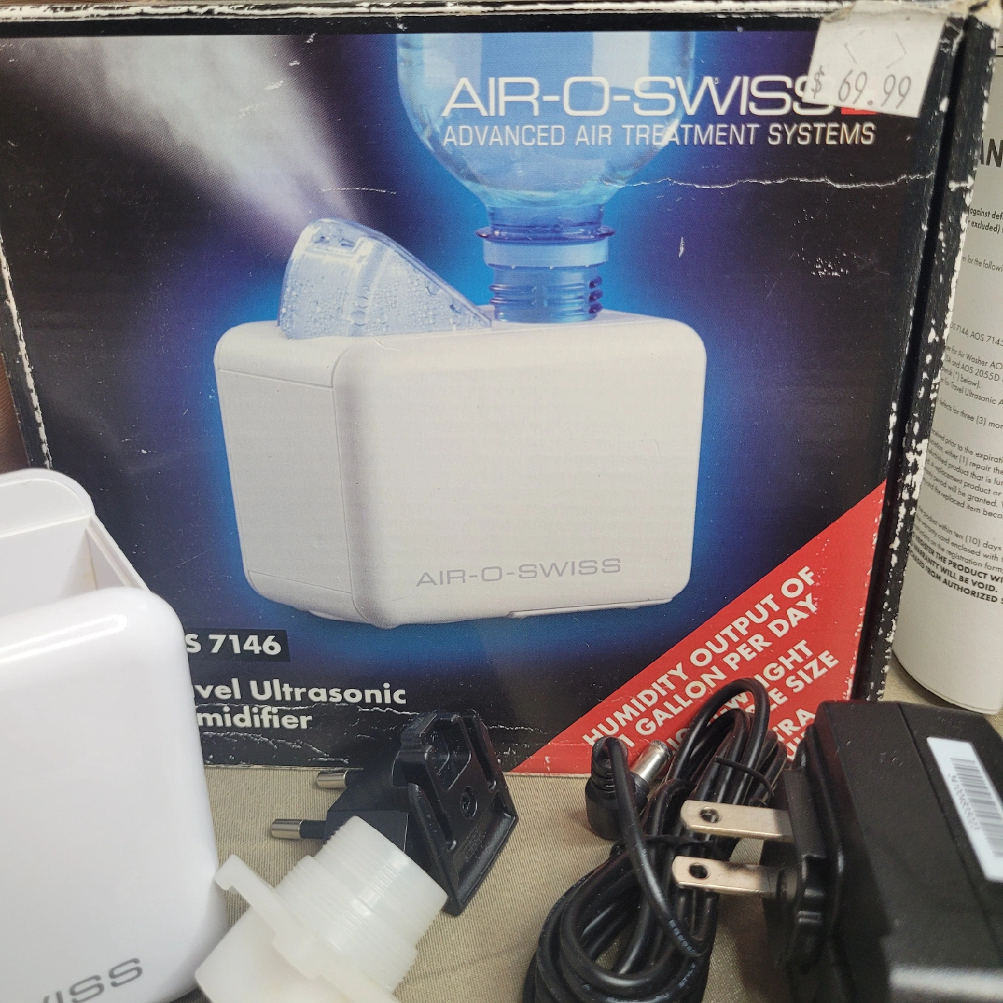 AIR-O-SWISS Travel Ultrasonic Humidifier - AOS 7146 Excellent Condition box not in Excellent Condition please see all pictures Please See all my Other Listings, Bundle & Save for a Better Deal! Located in Bradford, May be able to Meet, Shipping Offered at Buyers Expense, Please contact me for more Info & to make arrangements, sorry no holds without an ET, Thank you so much for Looking!