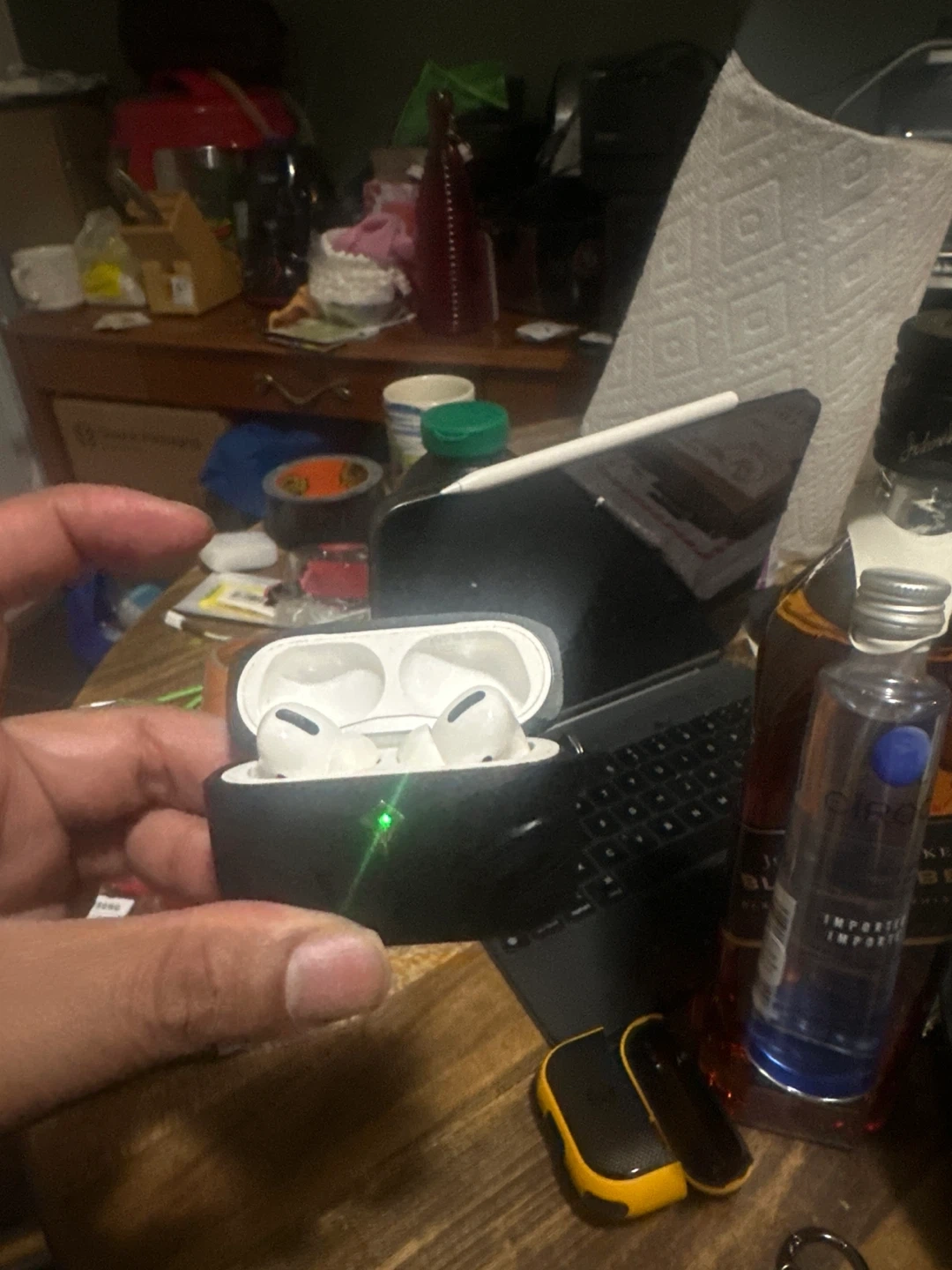Selling my used AirPods Pro. They come with a cool black case to keep them protected. Great for listening to music or podcasts on the go!