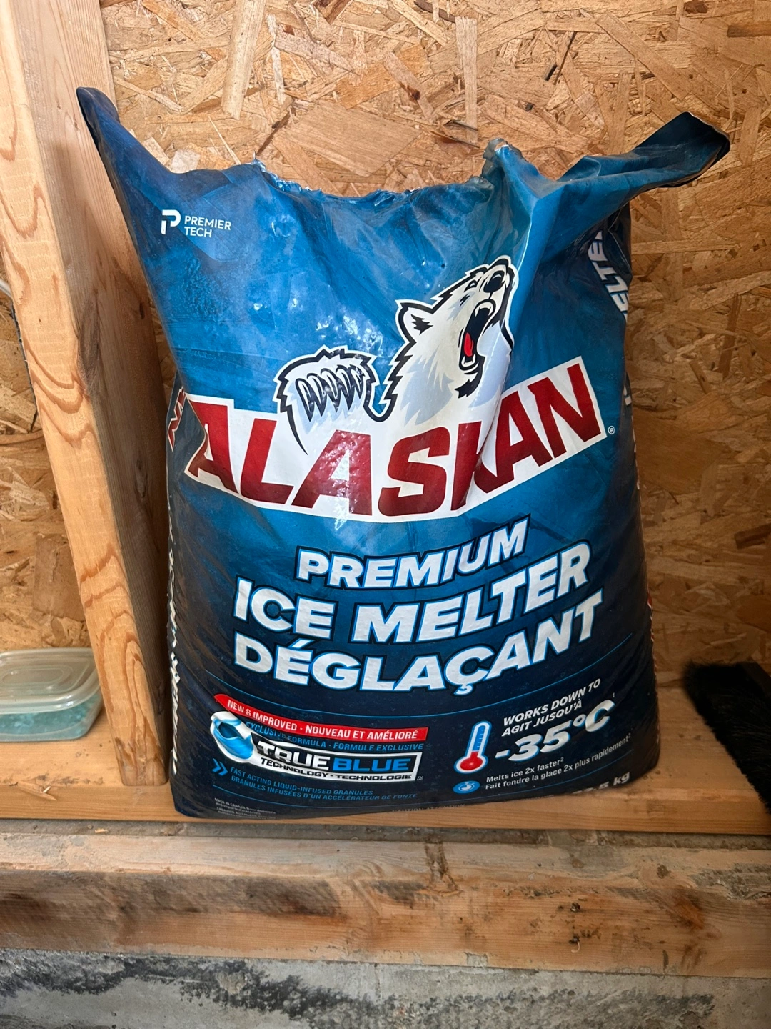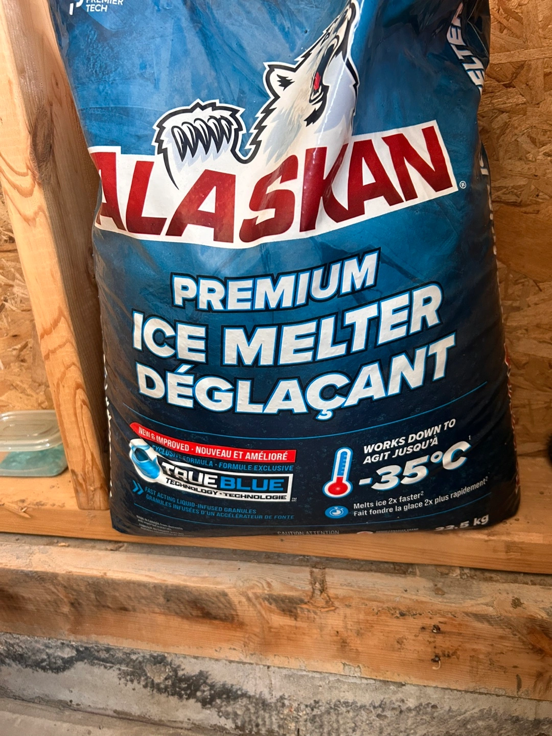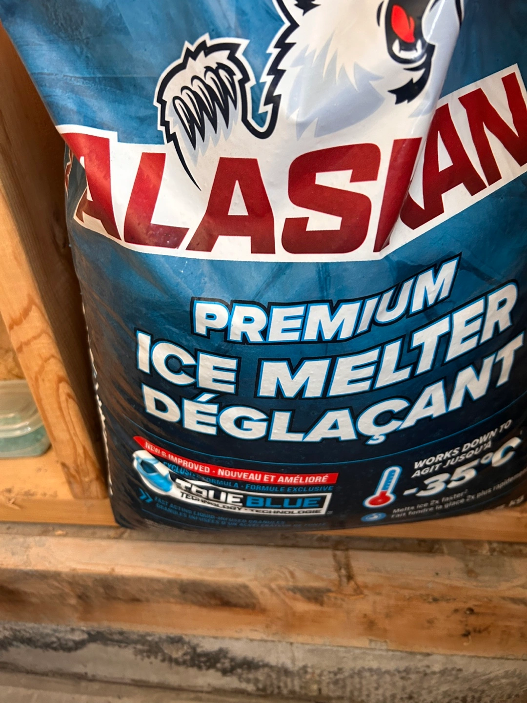 Partially used bag of Alaskan Premium Ice Melter. Works down to -35°C. Blue ice melt formula. Some ice melt remaining.