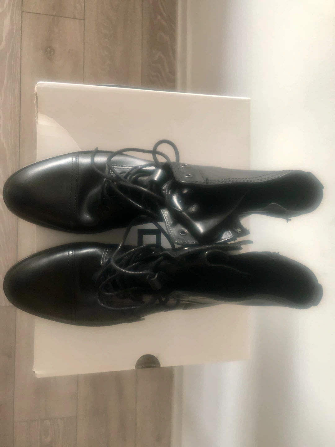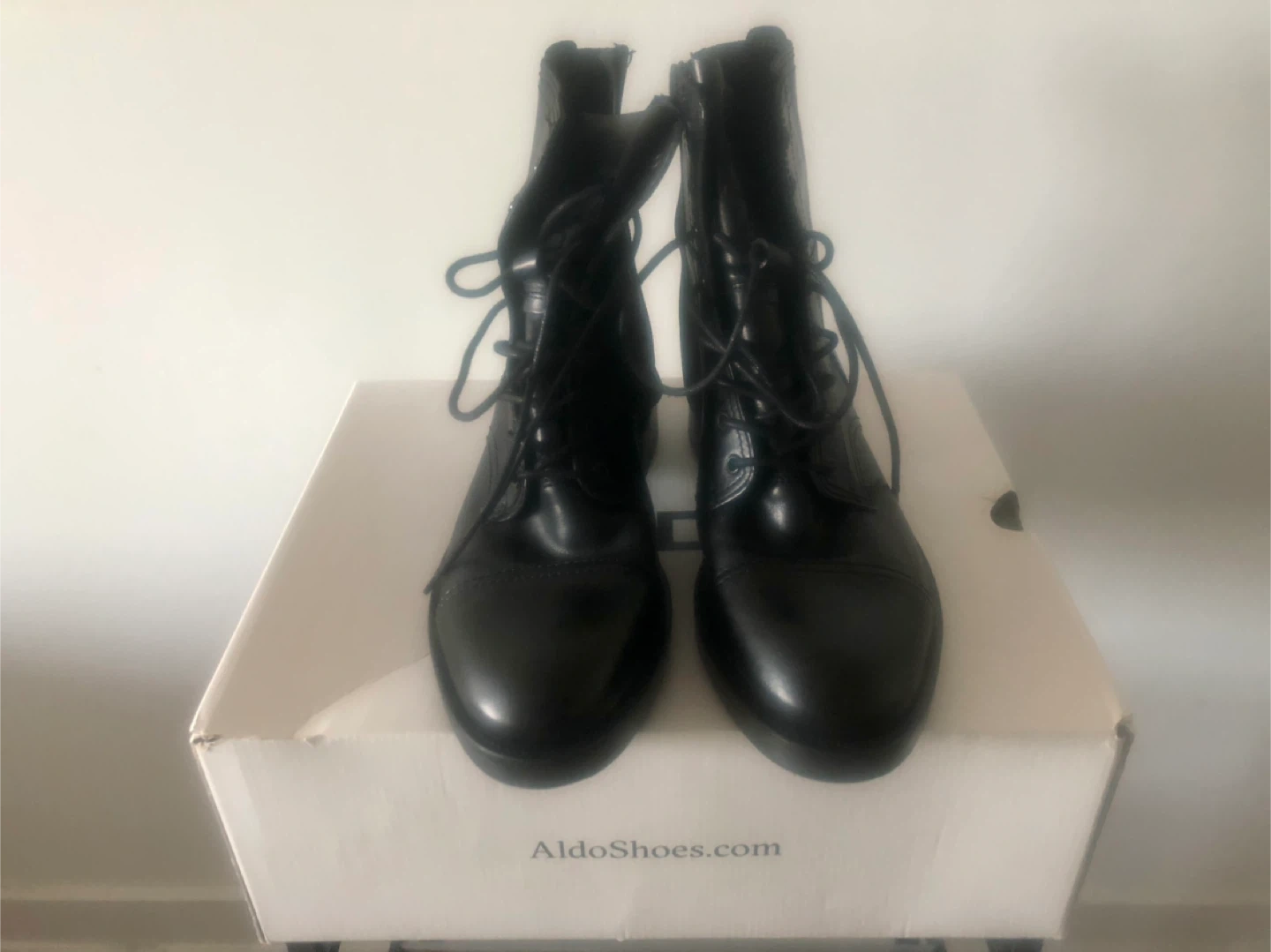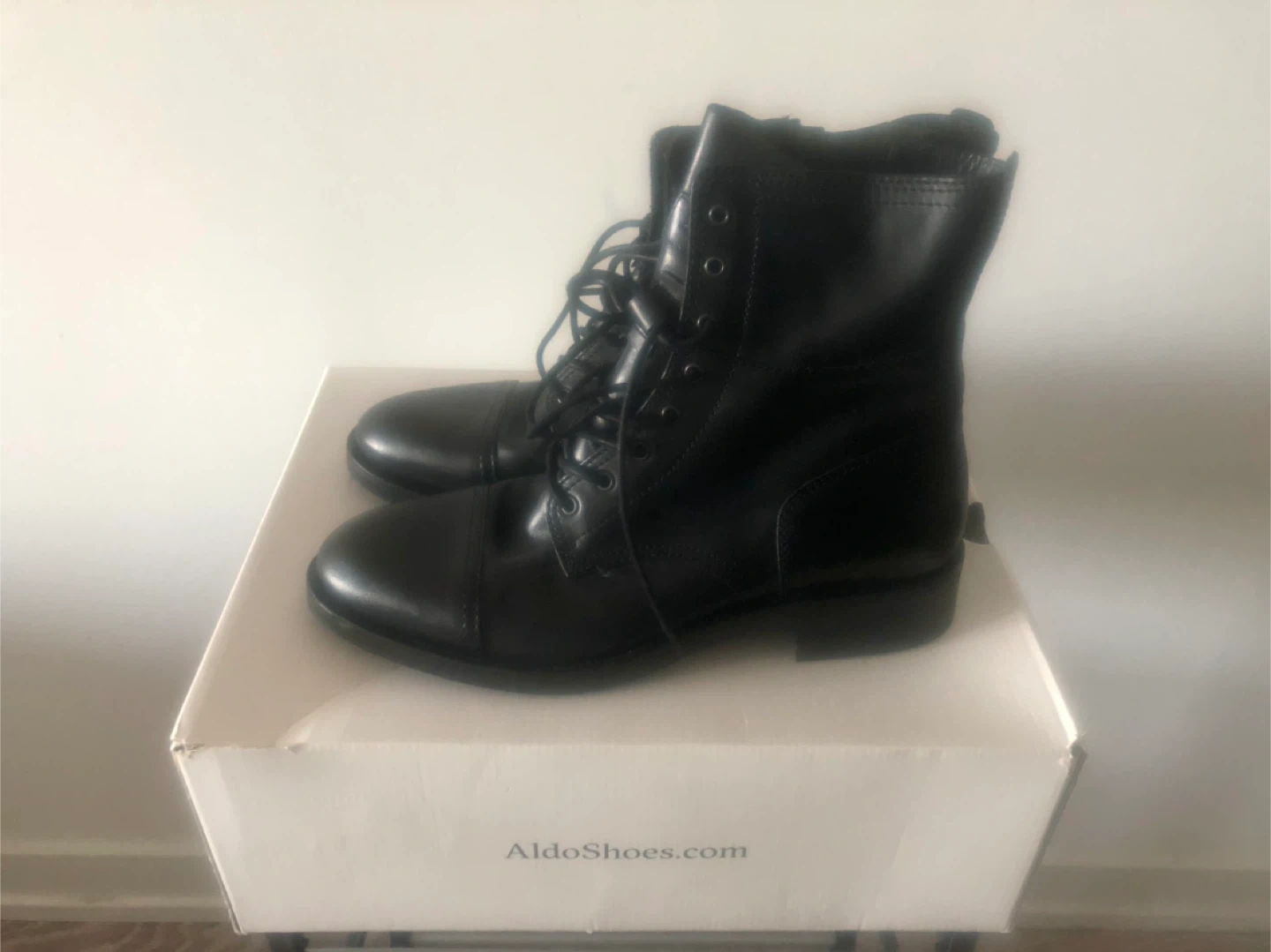 Selling a pair of Aldo black leather boots. They are in great condition and come with the original box. Perfect for adding a bit of edge to your outfit!