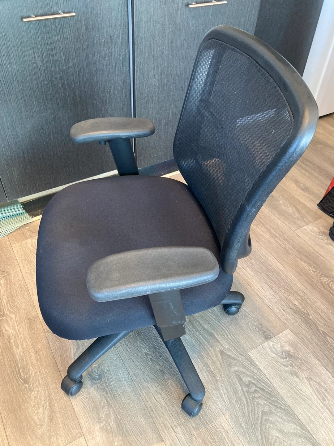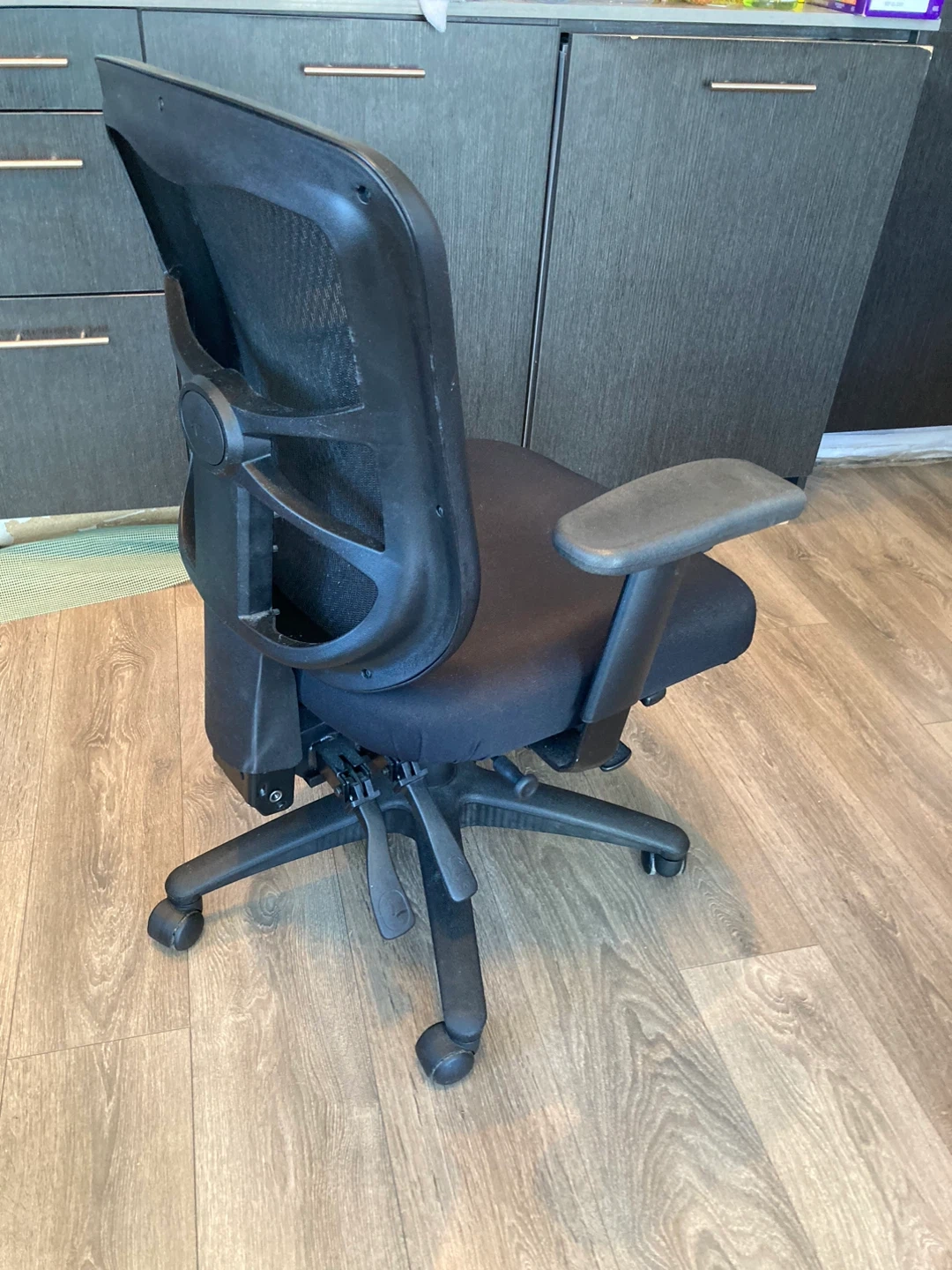 Selling an Alera office chair in black. It's in excellent condition and ready for a new home office! The mesh back is great for staying cool, and the seat, back and armrests are adjustable for extra comfort. Perfect for long work days or gaming sessions