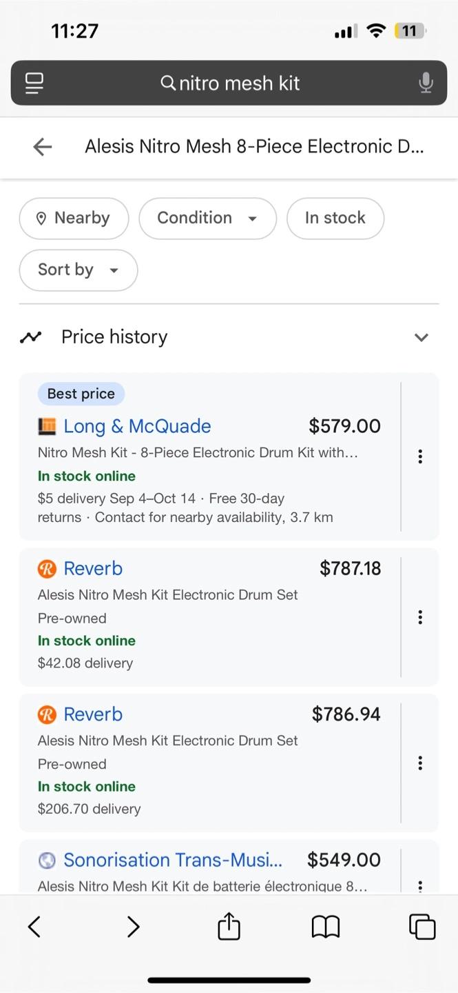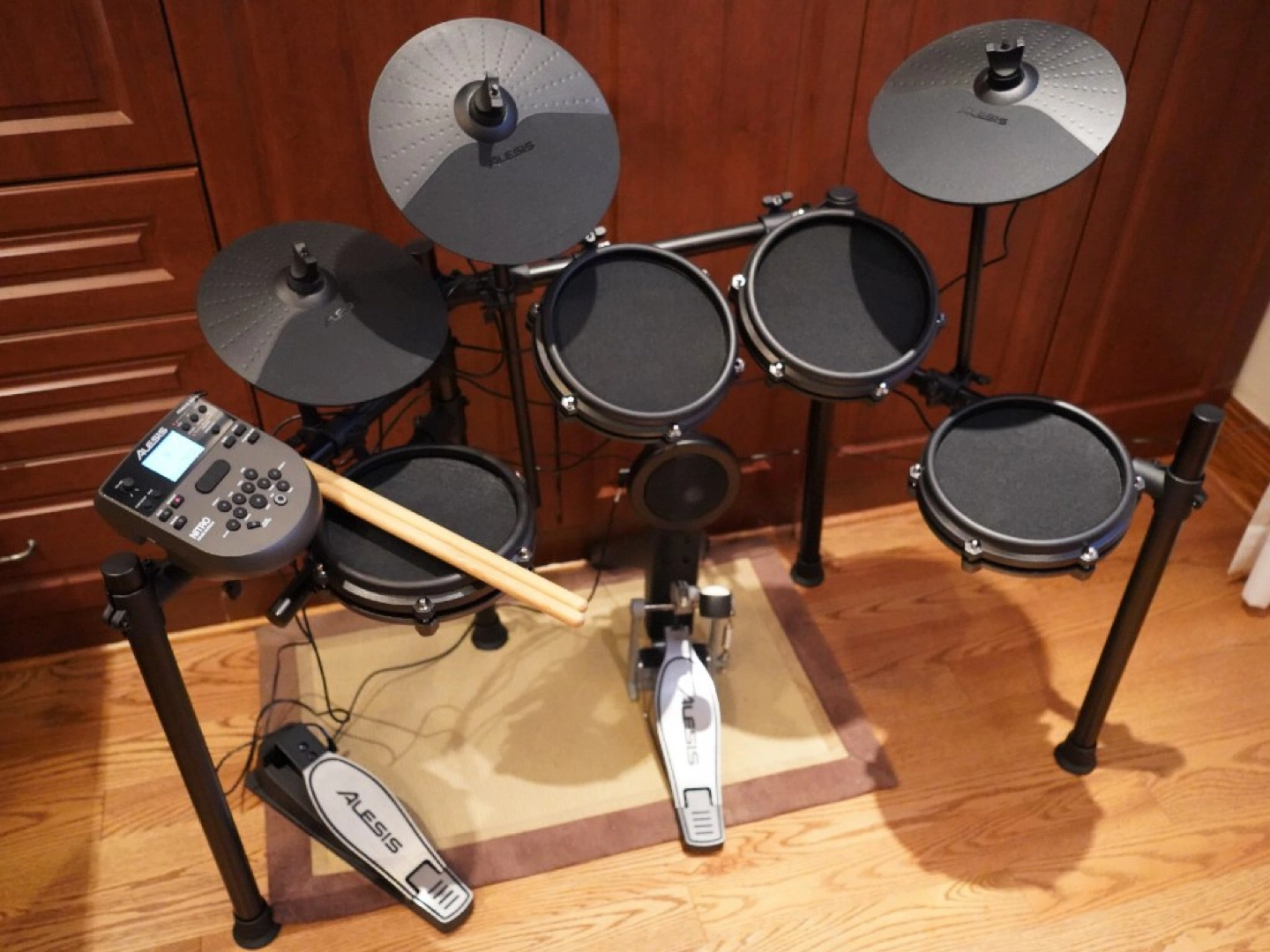 Selling an Alesis Nitro Mesh 8-piece electronic drum kit. It's in great condition and ready for a new home! Perfect for beginners or experienced drummers looking for a quiet practice solution