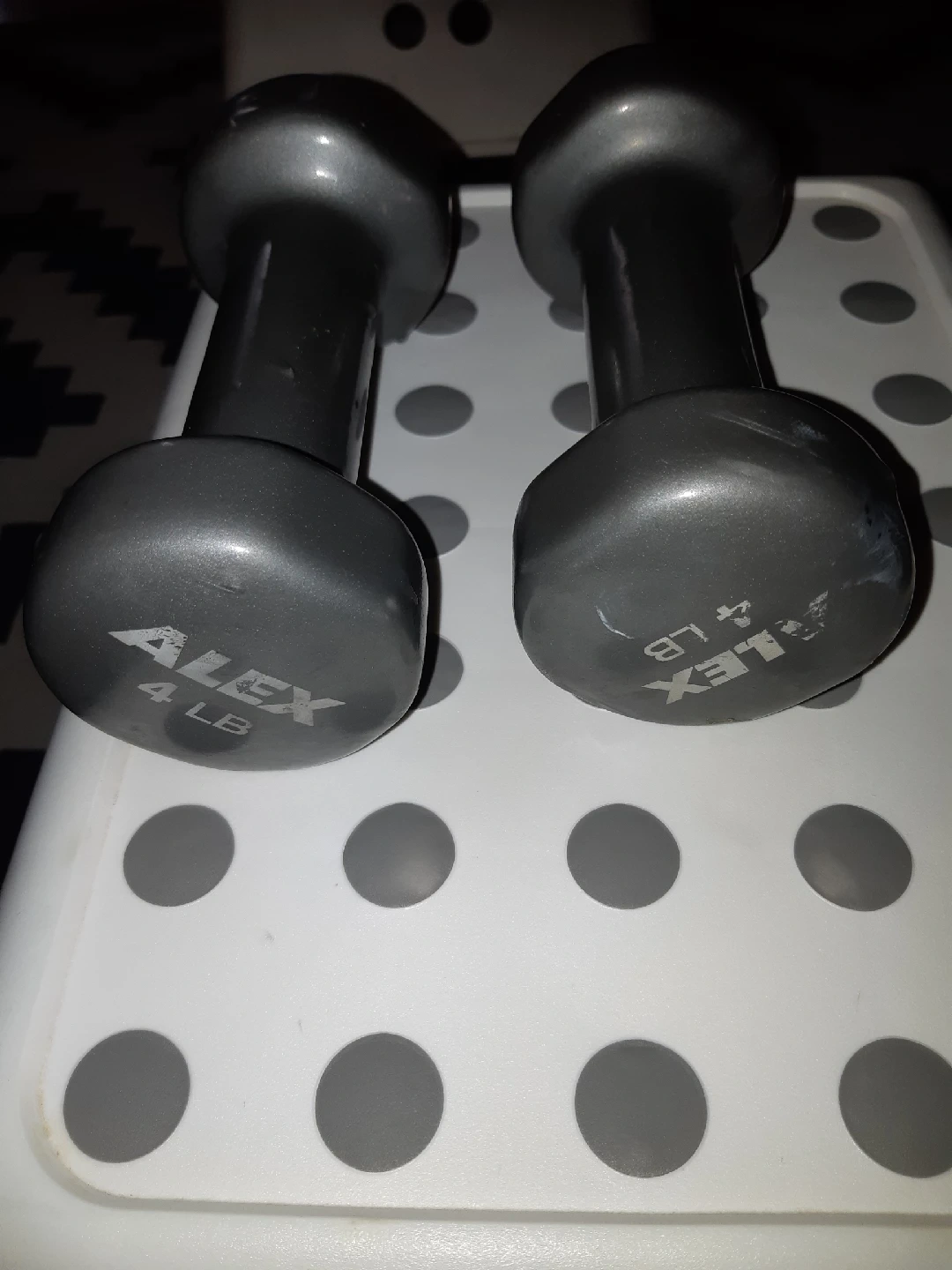 Selling a set of two Alex 4 LB dumbbells! They're in good condition and perfect for home workouts. Great for adding a little extra resistance to your routine