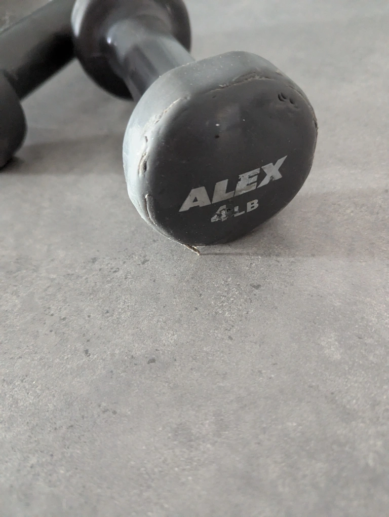 Selling a set of two Alex 4 LB dumbbells. They're in good condition and ready for your home workouts! There are imperfections. Asking 5.00