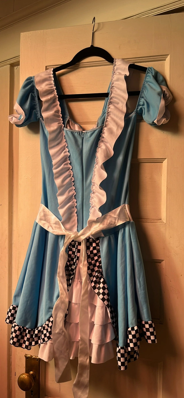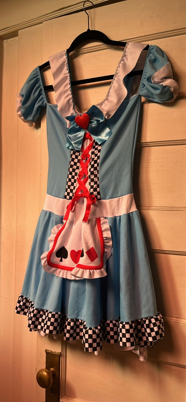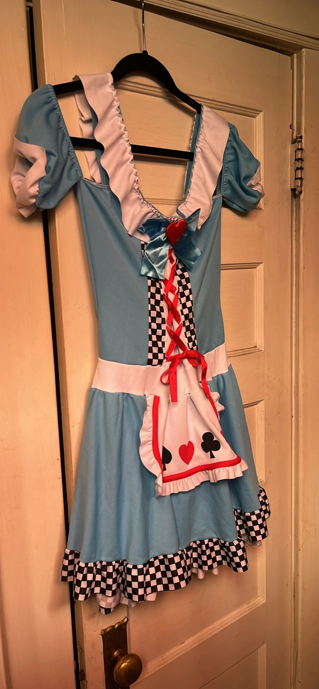 Adorable Alice in Wonderland costume! Perfect for Halloween or dress-up! Size Medium. Only been wore to try on. Let me know if you're interested!