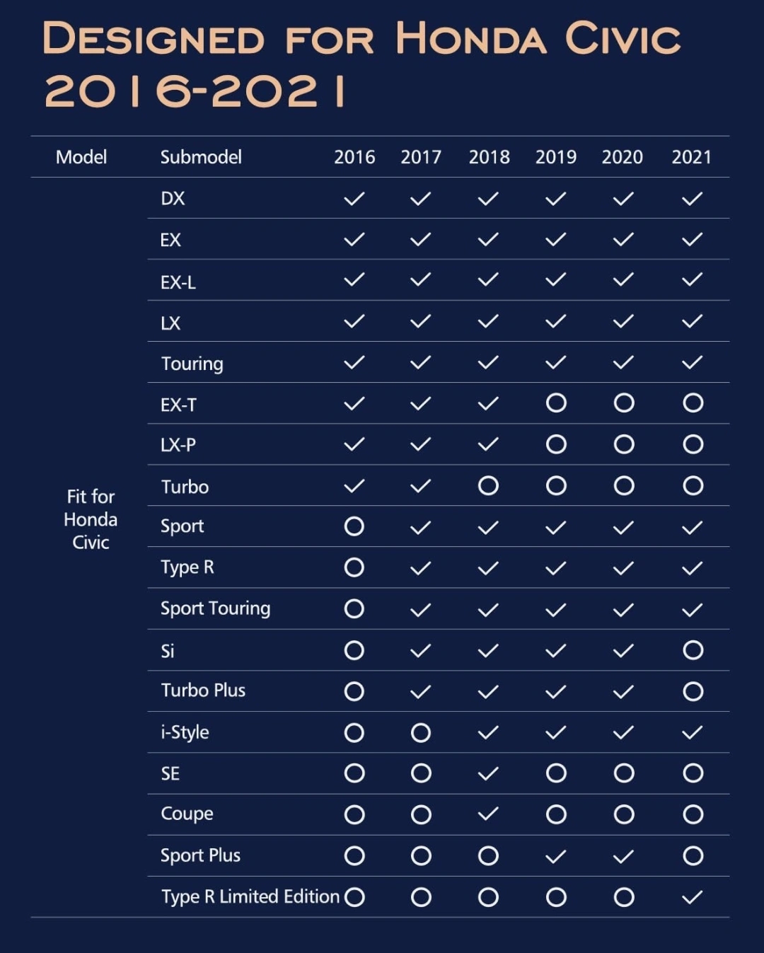 πŸš— Custom Fit All-Weather Floor Mats for Honda Civic Sedan (2016-2021) πŸš— Β°β€’β—‹β€’Β°β€’β—‹β€’Β°β€’β—‹β€’Β°β€’β—‹β€’Β°β€’β—‹β€’Β°β€’β—‹β€’Β°β€’β—‹β€’Β°β—‹β€’Β°β€’β—‹Β°β€’β—‹Β°β€’β—‹ 🌟 Price: $160 / - Retails 180+ πŸ“¦ Condition: New in open box πŸ“ Pick-Up Location: Scarborough Golf Club Road & Lawrence Ave East 🚚 Delivery Options: Local delivery or affordable shipping via Canada Post / UPS πŸ”Ž Don't Miss Out! Explore my other listings for more amazing deals. Thank you for your interest! Β°β€’β—‹β€’Β°β€’β—‹β€’Β°β€’β—‹β€’Β°β€’β—‹β€’Β°β€’β—‹β€’Β°β€’β—‹β€’Β°β€’β—‹β€’Β°β—‹β€’Β°β€’β—‹Β°β€’β—‹Β°β€’β—‹ βœ” Perfect Compatibility βœ… Fits Honda Civic Sedan models (2016-2021): DX, EX, EX-L, LX, Touring, EX-T, LX-P, Turbo, Sport, Type R, Sport Touring Si, Turbo Plus, i-Style, SE, Coupe, Sport Plus, and Type R Limited Edition. πŸ›  Includes a full set: 2 front floor mats, 1 rear floor liner, and 1 trunk mat. βœ” All-Weather Protection 🌦 Made with TPE tri-extruded material for durability and performance. 🌱 Odorless, eco-friendly, and protects against rain, snow, mud, and spills. 🎨 Textured design adds style and offers better protection than traditional carpet mats. βœ” Upgraded Durable XPE Material πŸ›‘ Triple-layer design (TPE + XPE + PET) for maximum strength and longevity. πŸ’§ Waterproof, non-slip, sound-insulating, and heat-resistant. ✨ Sleek, minimal style enhances your car’s interior while providing top-notch protection. βœ” Easy Installation & Maintenance πŸ”§ Quick installation with a secure fit. 🧼 Easy to clean – rinse with water or wipe away tough stains effortlessly. πŸ’Ž Upgrade Your Civic’s Interior Today! 🚘 Add style, functionality, and unbeatable protection to your Honda Civic Sedan with these premium floor mats!