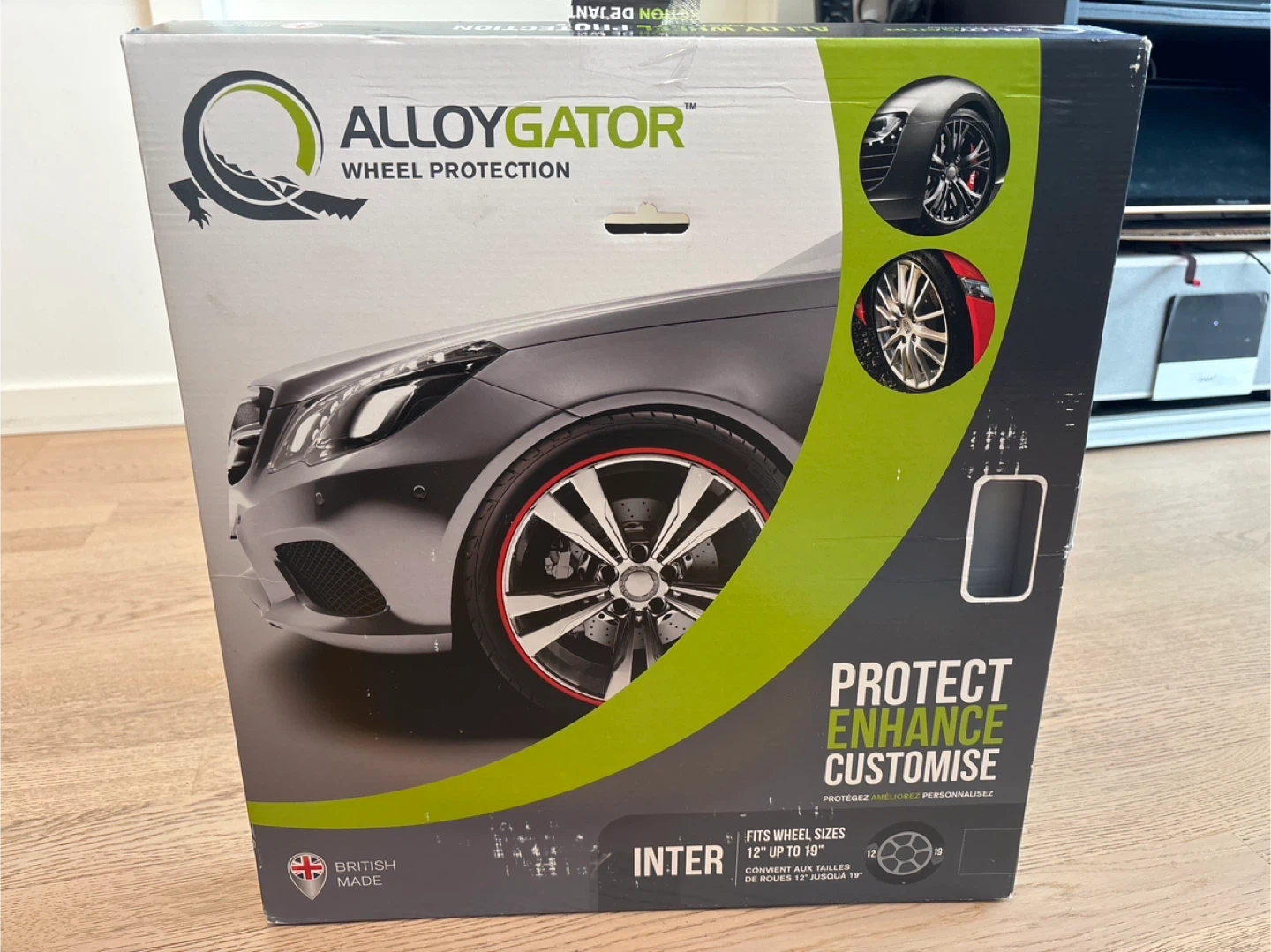 AlloyGator wheel protection in yellow to protect, enhance, and customize your wheels. Only selling 3 pieces, fit wheel sizes 12" up to 19". Comes with instructions and components. Box is included