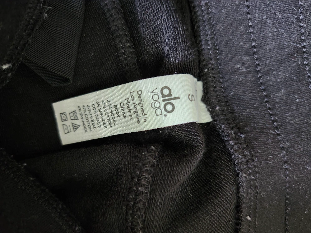 Selling a pair of Alo Yoga black joggers in size small. They're in great shape and super comfy for lounging or working out. The fabric is a blend of cotton, spandex, and modal, making them soft and stretchy. Perfect for everyday wear! They are black and are darker than pictured, not faded at all.