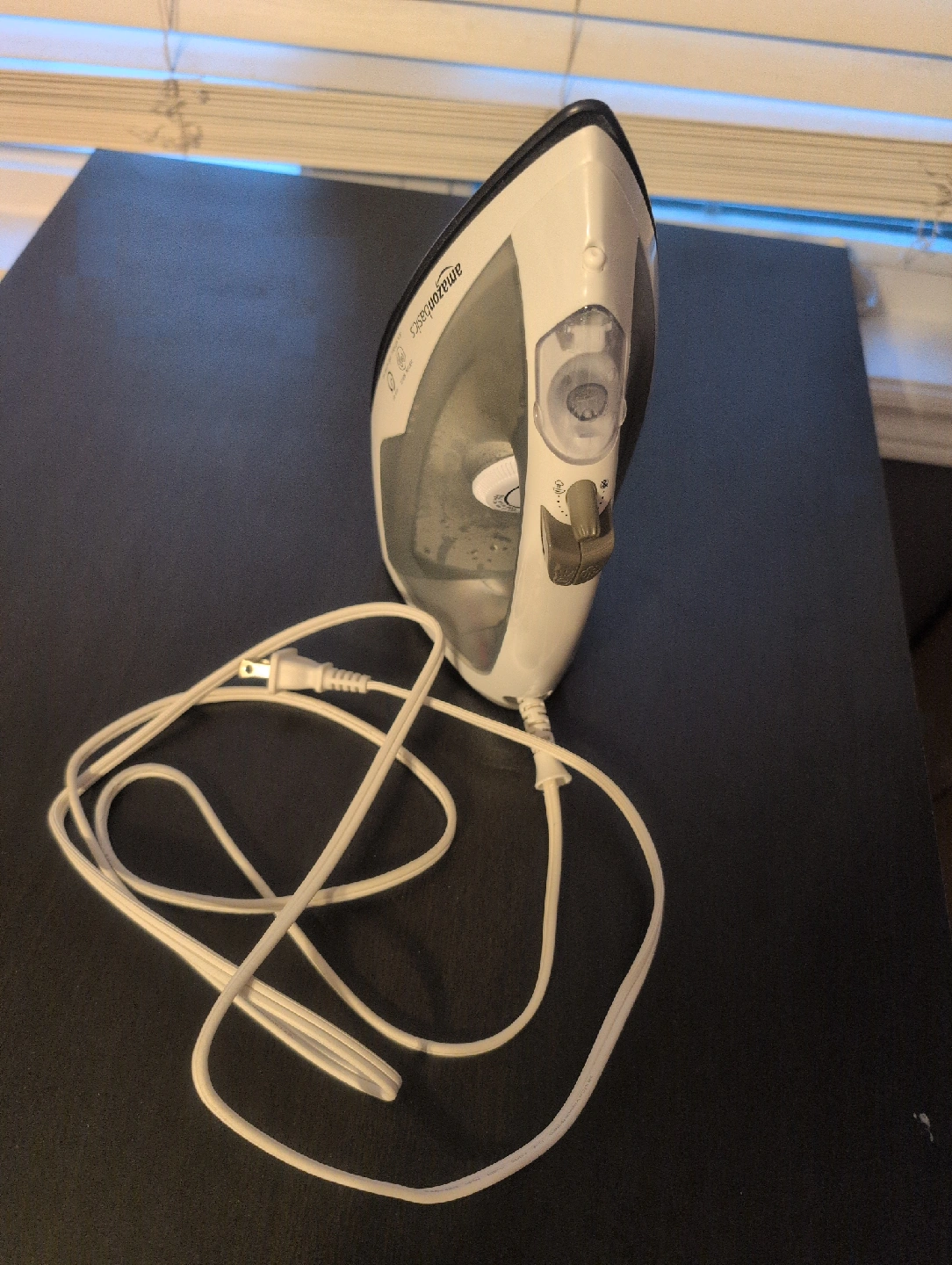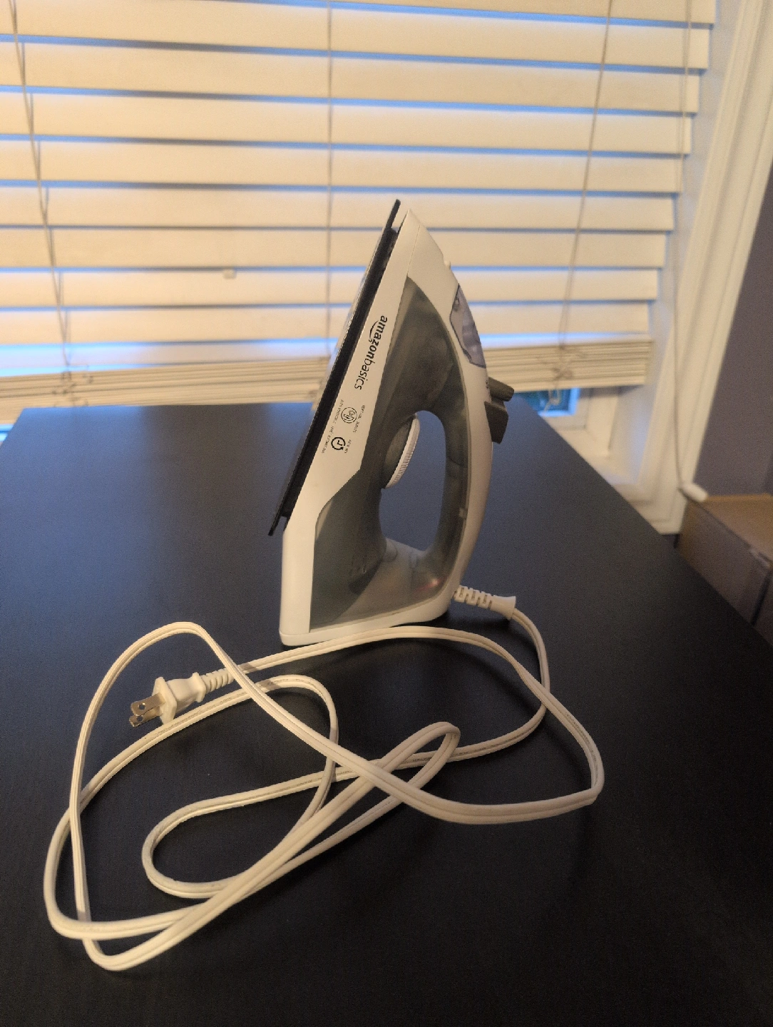 Selling a used AmazonBasics steam iron. It's in good working condition and ready to help you get those wrinkles out! Perfect for quick touch-ups or tackling a whole load of laundry