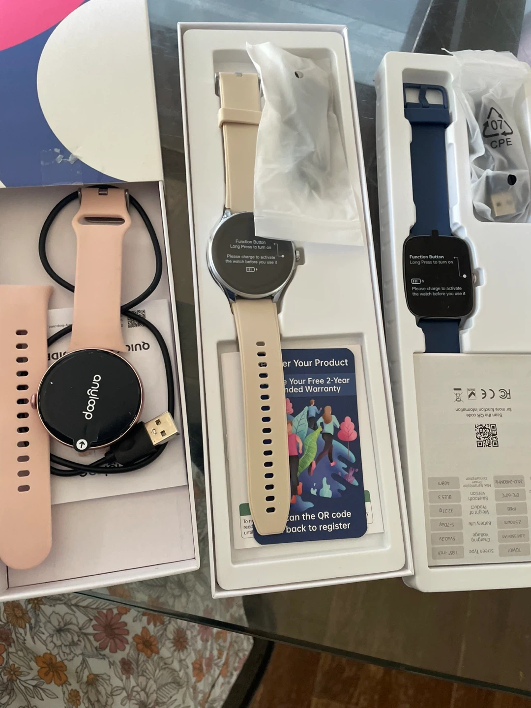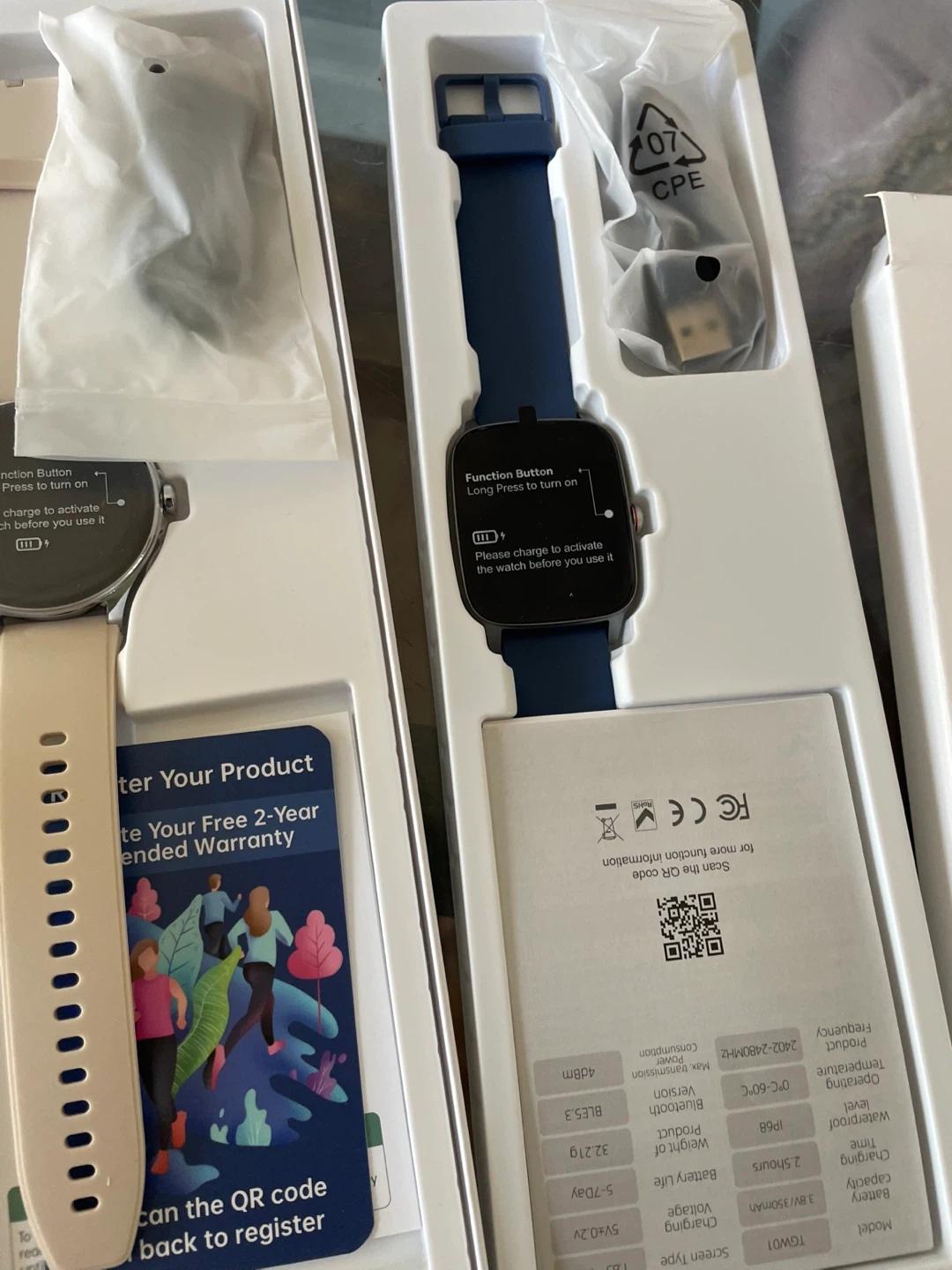 Selling a brand new Amyloop smartwatch set! Comes with two watches, one with a cream band and the other with a navy blue band. Both are still in their original packaging and include all components. A great gift idea!