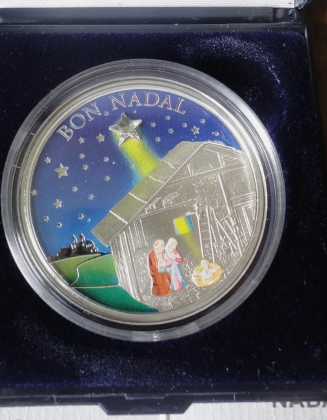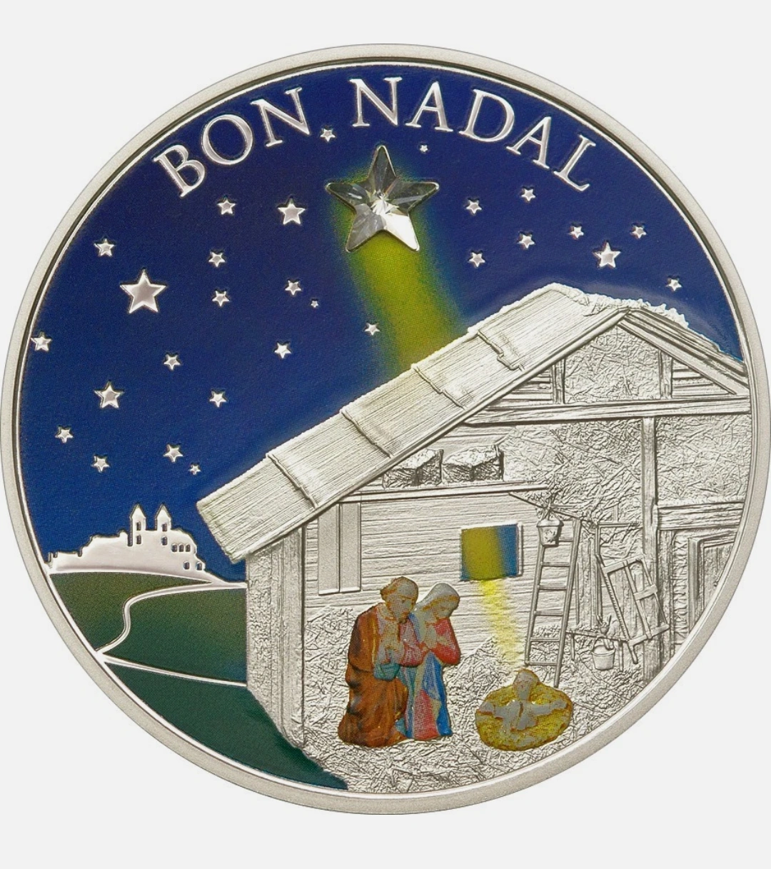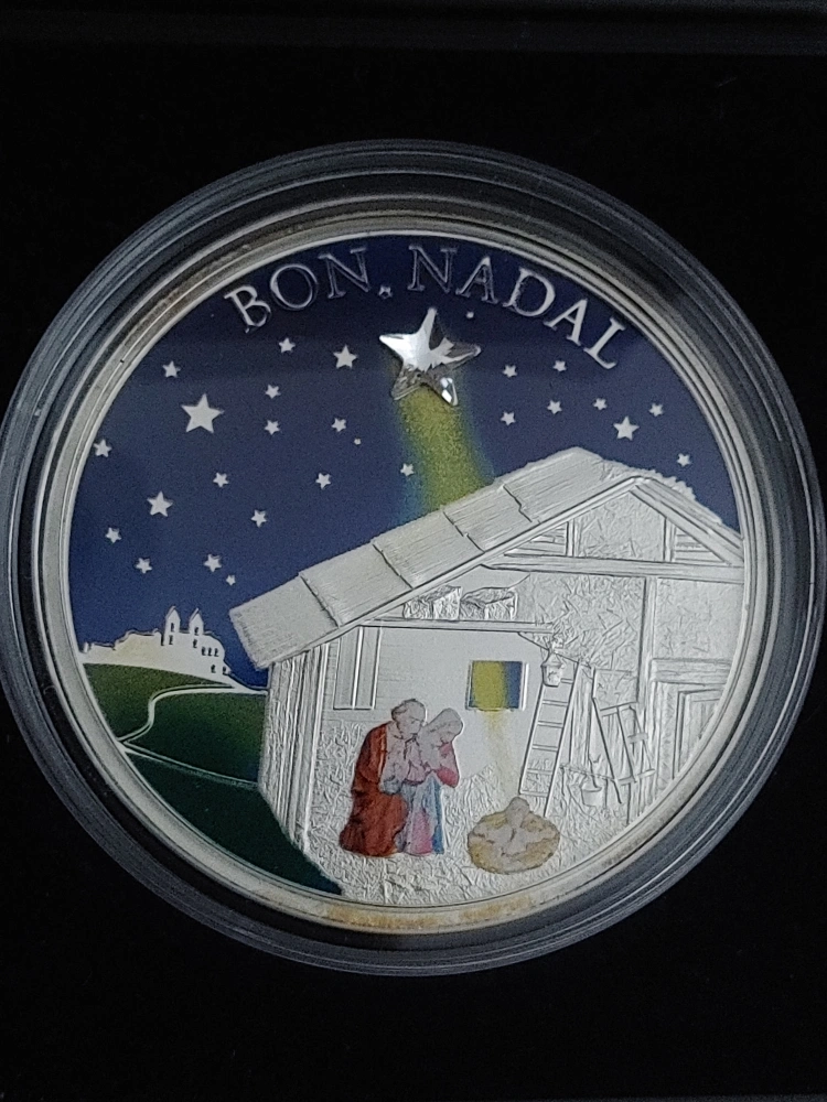 Selling a commemorative silver coin from Andorra, dated 2011. It features the "Bon Nadal" (Merry Christmas) design. A unique collectible! 1 oz sterling silver.