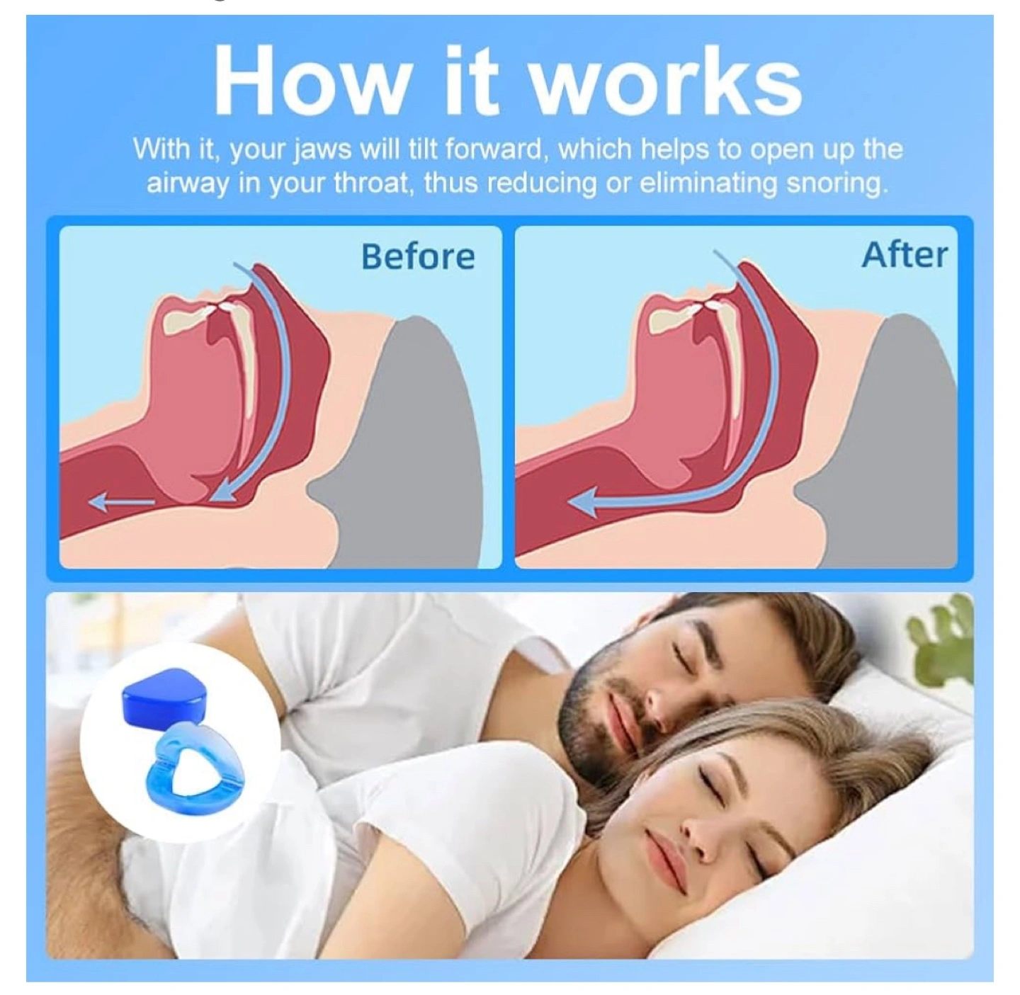 This anti-snore mouthpiece helps to open up the airway in your throat, thus reducing or eliminating snoring It is suitable for adults and kids It ensures more comfortable breathing through the nose for a good night's sleep It can also prevent drooling, prevent sleep talking, and correct mouth breathing Meet up & cash only pls Meet up is in Nobleton