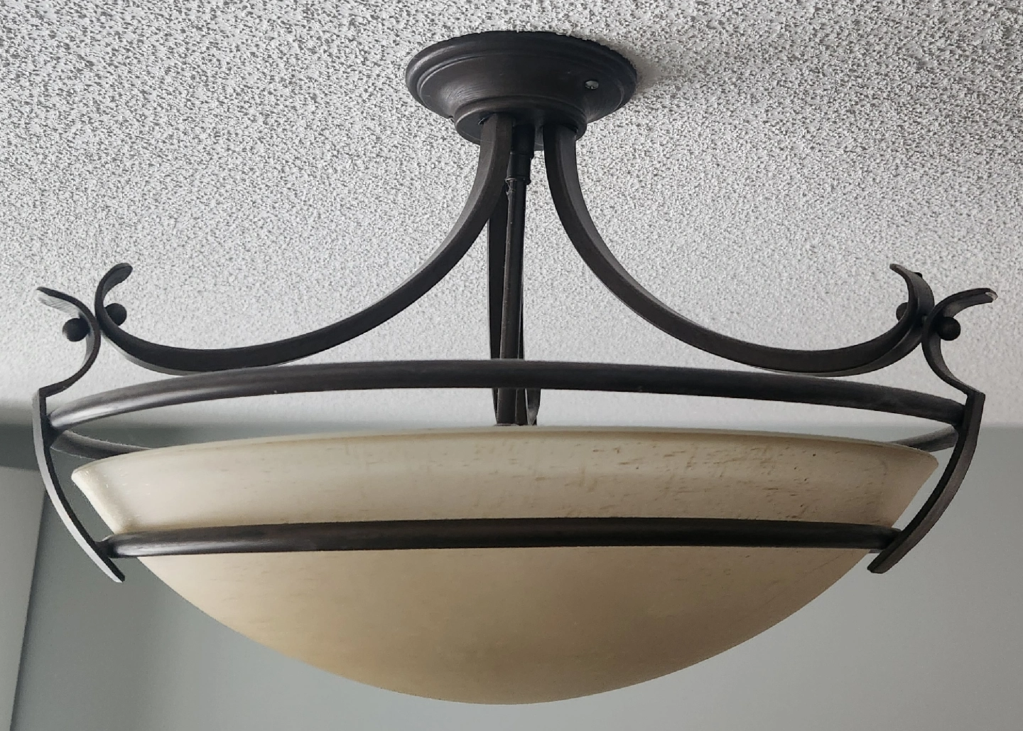 Classic, vintage style light measures 16 inches diameter (41 cm) 3-bulb fixture provides ample lighting for bedroom, hallway, living room, entryway, dining room, kitchen *Fixture only, bulbs not included