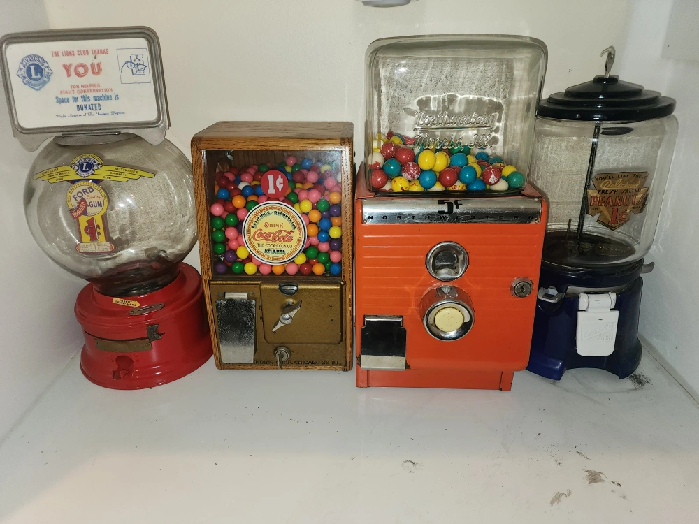 -4 antique machines. -All in great shape for their age. -Some are worth more than others (the blue one is worth around 1200, the orange 3-500) -They all have keys except the orange one but it is open. Make an offer Please do your research before making an offer.