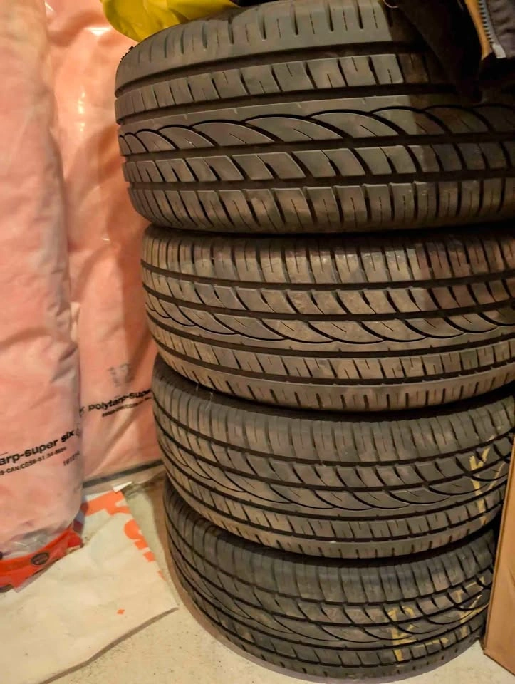 Looking to sell my old Aplus A607 tires which are 215/55/ZR17 98W, DOT information can be seen in the images below. If I remember correctly these are summer tires only and when I changed tires my mechanic mentioned it has 1-2 seasons maybe 3 depending on driving style and wear & tear. The tires have no leaks or cracks and the thread still looks good. Looking to get $265 or best offer no trades. Will not do deliveries but can meet at a Peel police station or address given if a serious buyer.