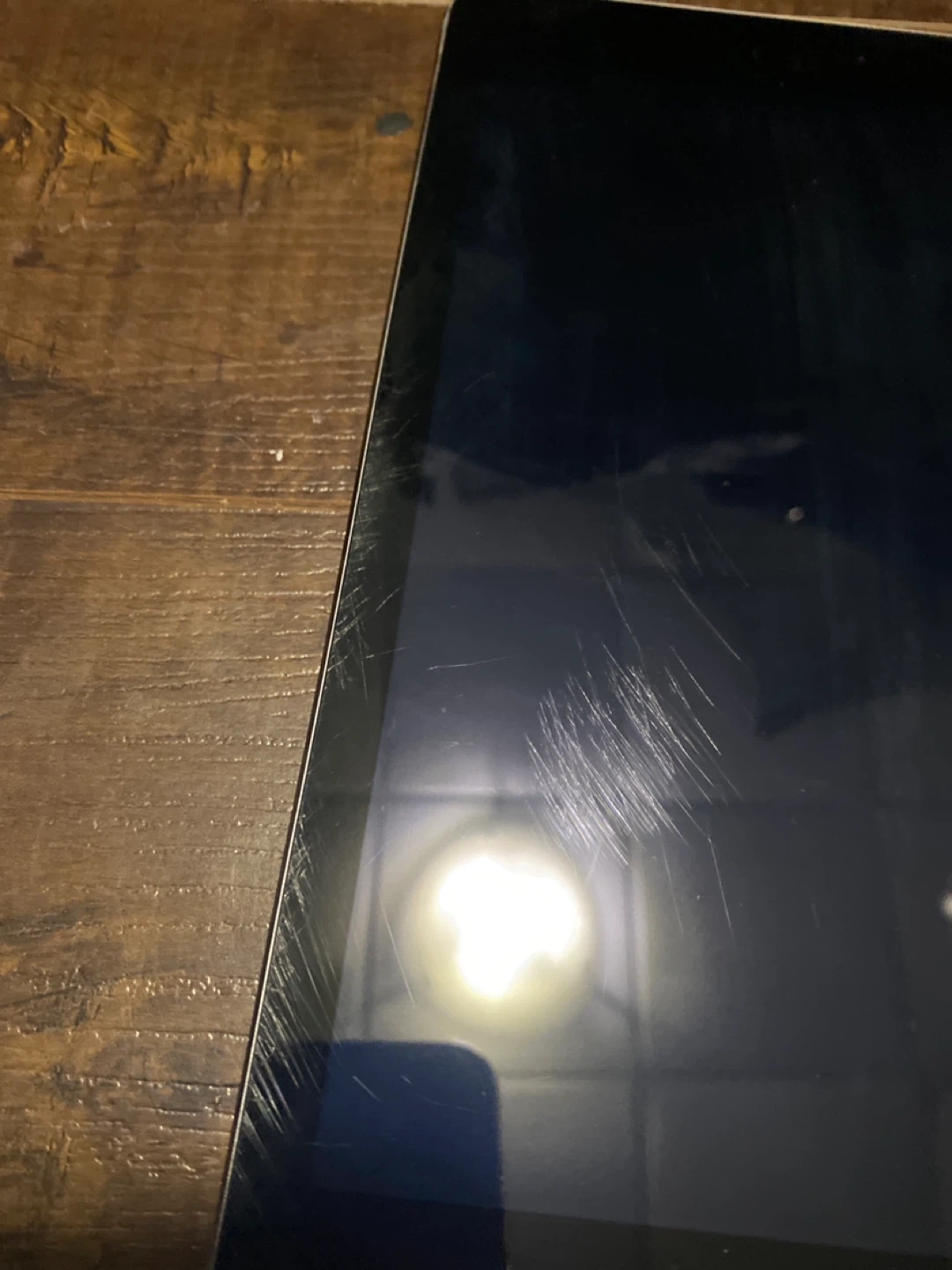Selling a used Apple iPad in silver. It has some scratches on the screen and edges, as shown in the photos. Still works great!