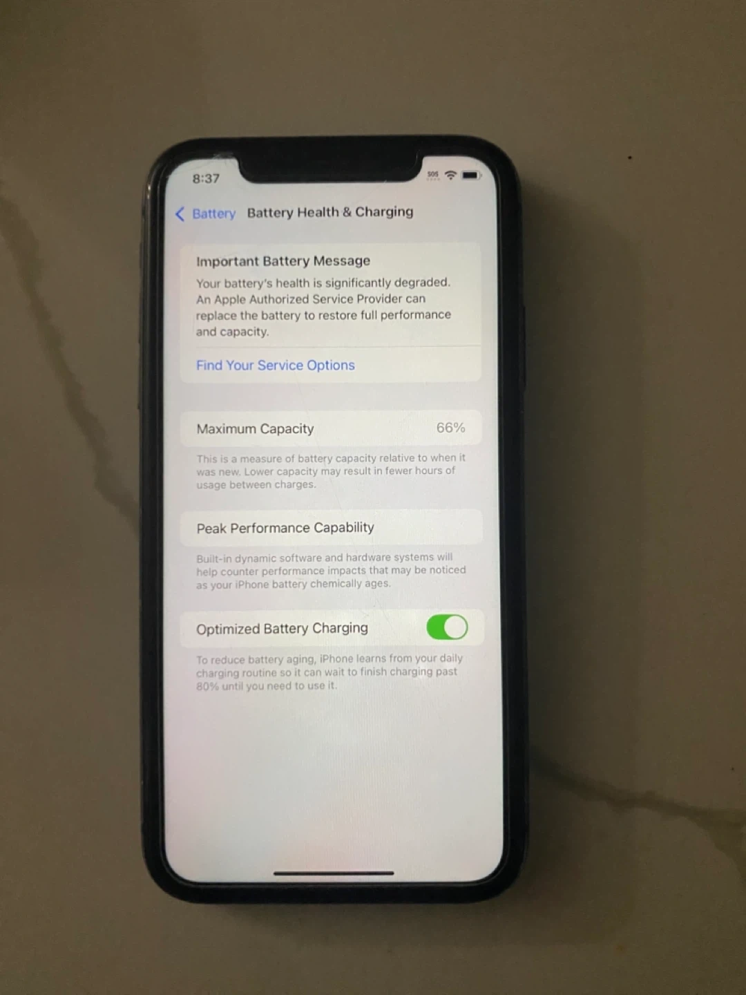 Selling a black iPhone 11. The battery health is at 66%. It has some signs of wear, as shown in the photos.
