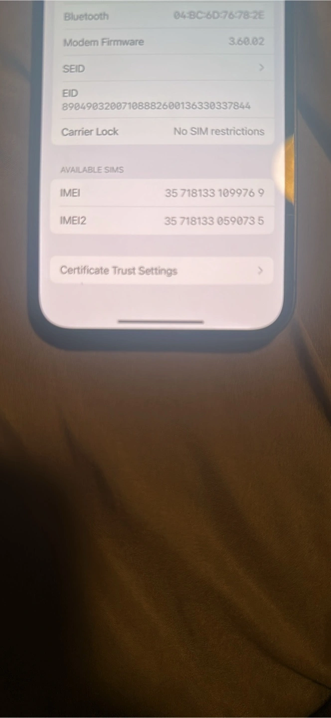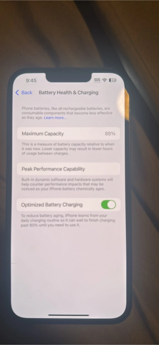 Selling an Apple iPhone 14 in black with 128GB of storage. The battery health is at 88%. It has no SIM restrictions Small minor crack on the back and phone shows wear & tear of everyday use. looking for a new owner! Put a case on it and it’ll look almost brand new Price is slightly negotiable, mostly firm! Won’t respond to lowballers. If you have any questions please feel free to message me :)