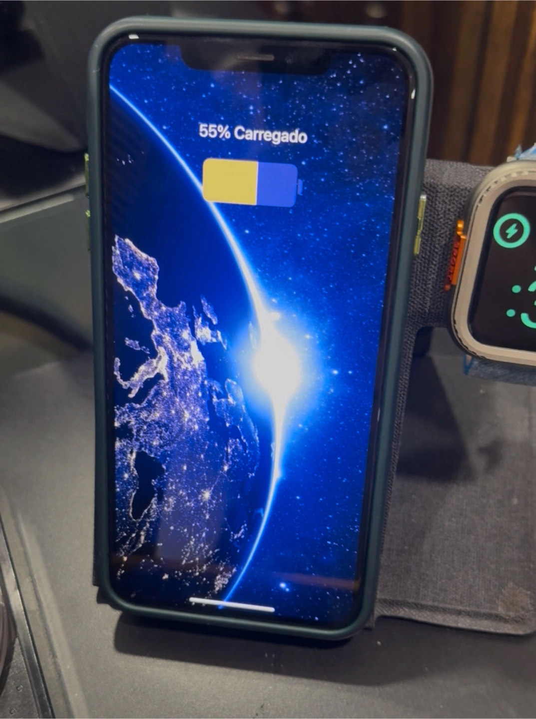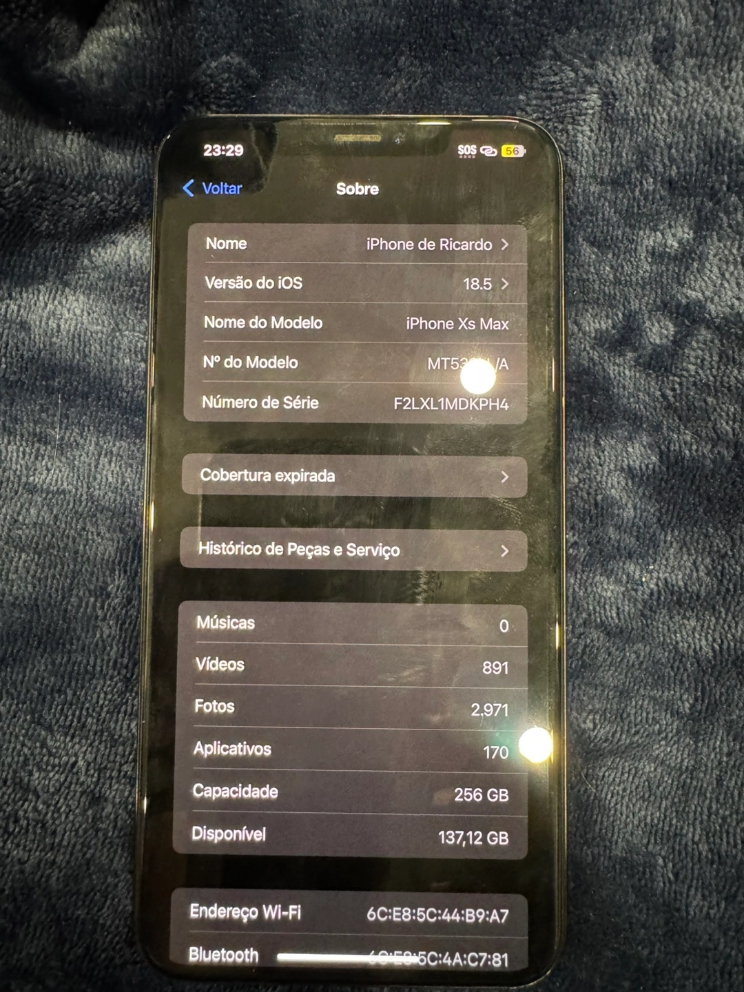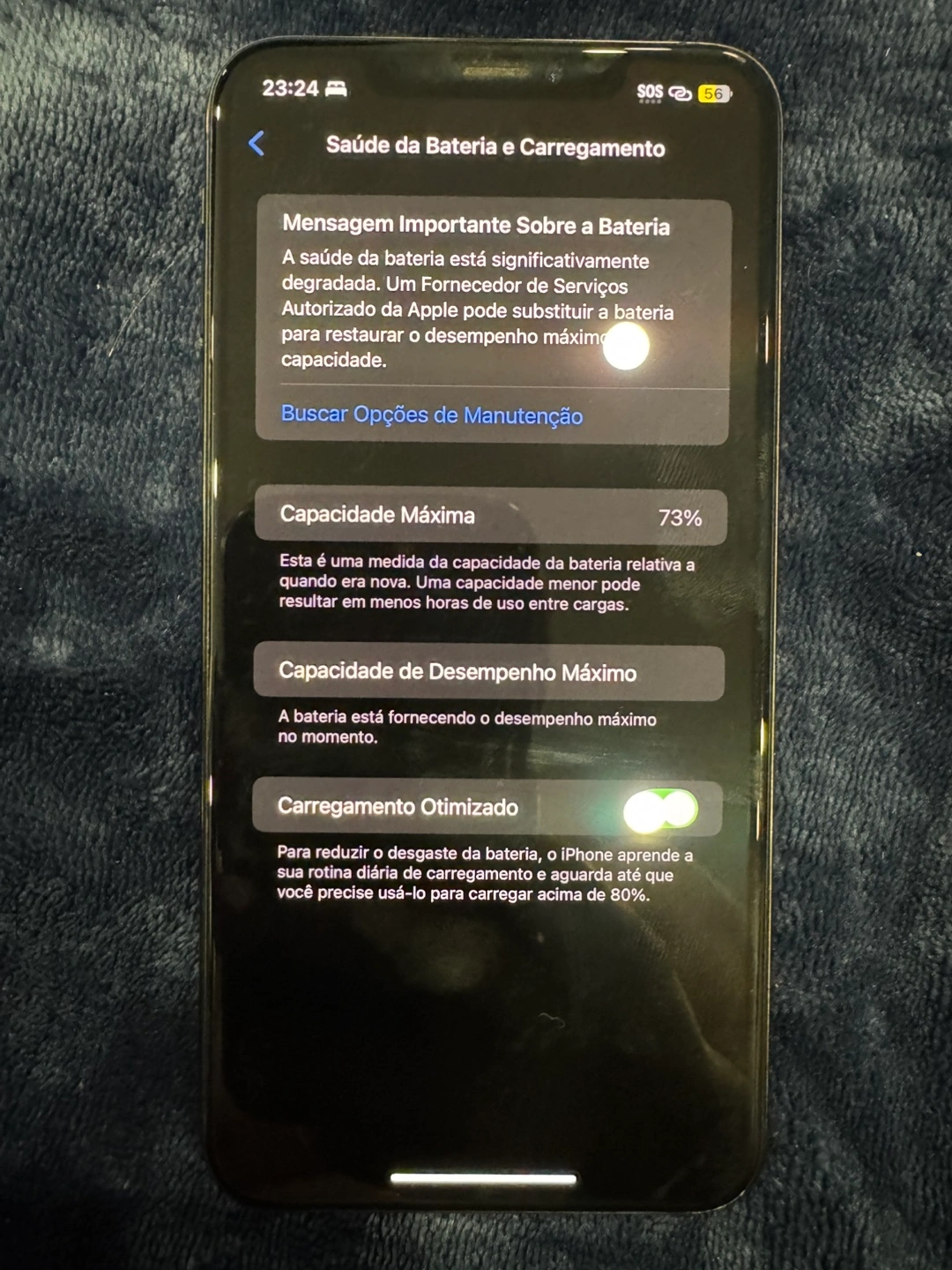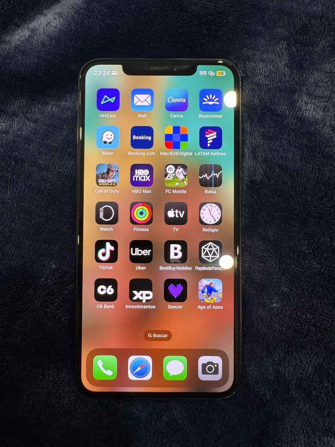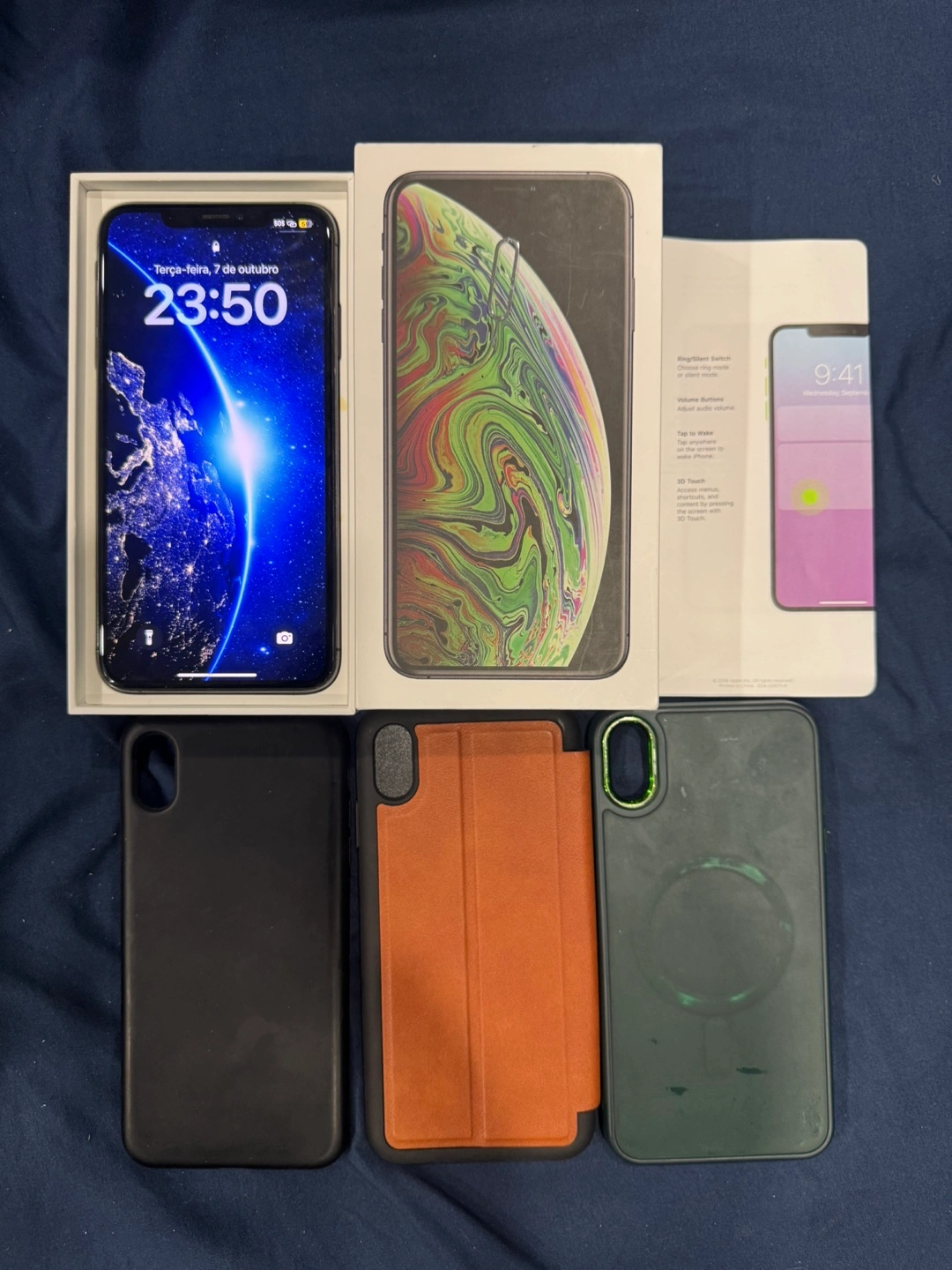 Apple iPhone XS Max with 256GB of storage. The battery health is at 73%. Selling for this price because you need to do a cleaning at the charger input, I'm a carpenter finished entering wood dust, other than that it has no defect, it charges normally on any magnetic charger. I took a picture underneath just to check the dust of the wood and the case for the same reason. OBS: Unlocked device for any telephone operator!
