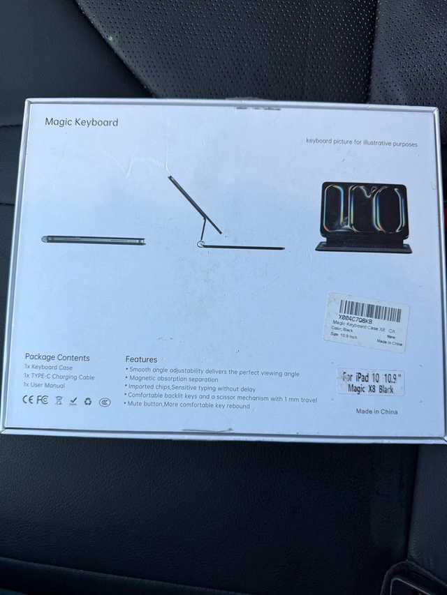 Apple magic keyboard for Ipad 10, 10.9 etc. brand new condition for more information you can check the picture and video if you going to buy from store it will cost you alot after taxes but I am also giving new one and already put way more low and firm non negotiable price for this you can share your address or intersection I will see how far you are from me and if I can come, thanks