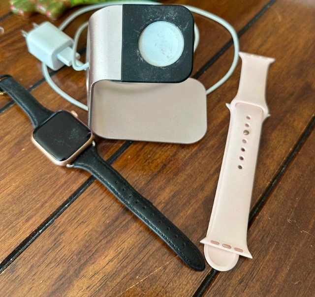 I'm selling my used Apple Series 6 watch, which comes with a charger and band. This watch is perfect for anyone looking to track their fitness or stay connected on the go. I would say it is in good condition. Here are some specifications: * Model: Series 6 * Includes: Charger and band * Condition: Used