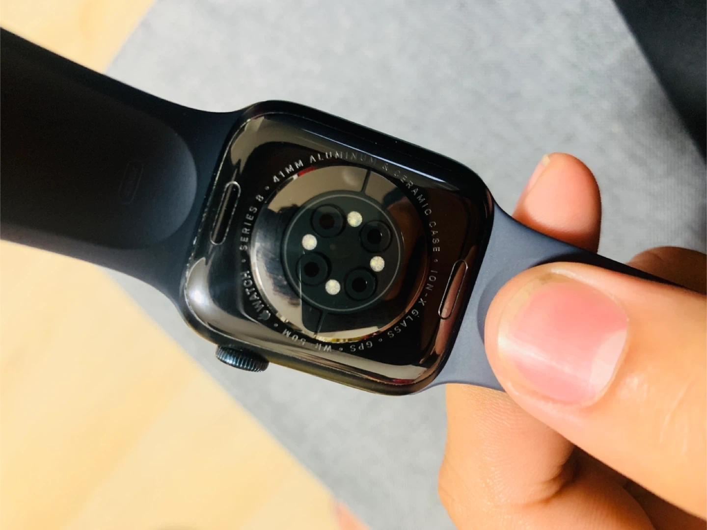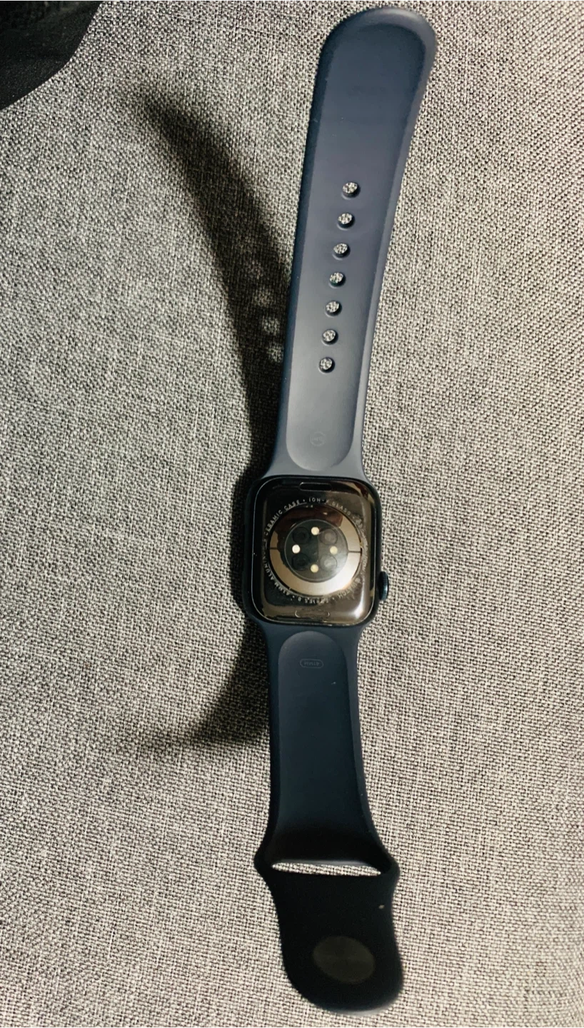 Selling an Apple Watch Series 8, 41mm. It's in new condition and ready for a new wrist! The band is a stylish grey colour, perfect for everyday weary also will give the buyer 3 stylish straps in orange, white and silver and a protective covers for the protection of the screen