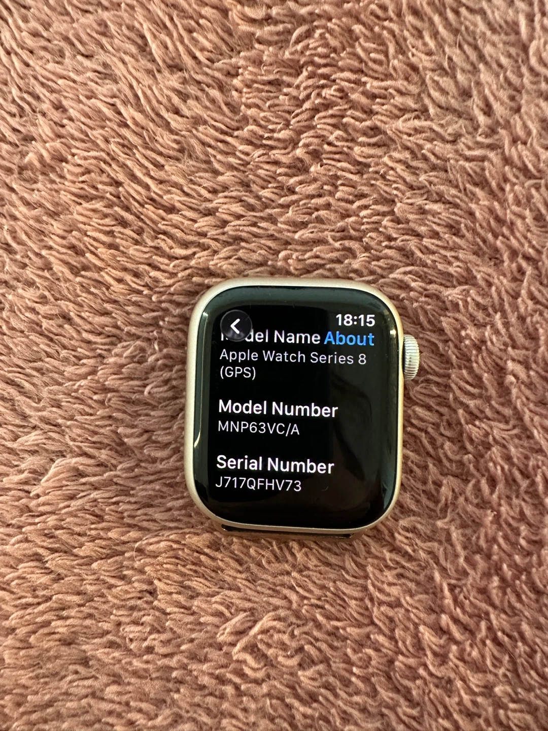 Selling my Apple Watch Series 8. The battery health is at 88%. Model Number is MNP63VC/A. It's in great condition and ready for a new owner!