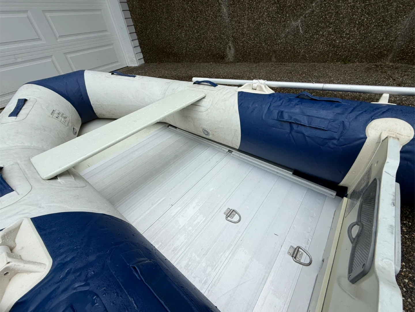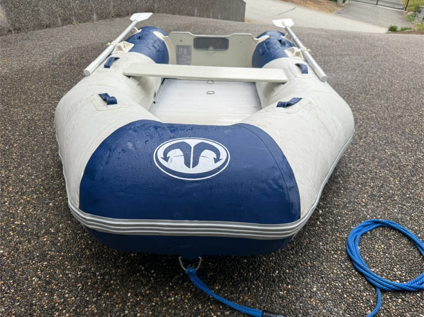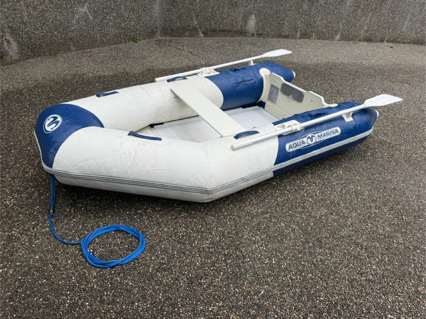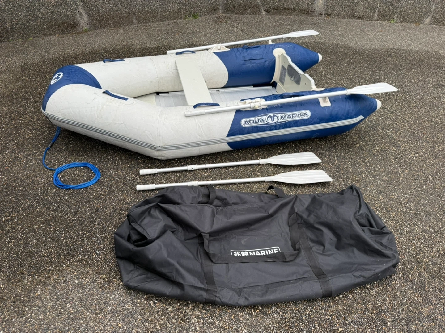 Selling an Aqua Marina inflatable boat in good condition. It comes with 4 oars and a convenient carry bag for easy transport and storage. Perfect for enjoying some time on the water! The length of this boat is 9ft.