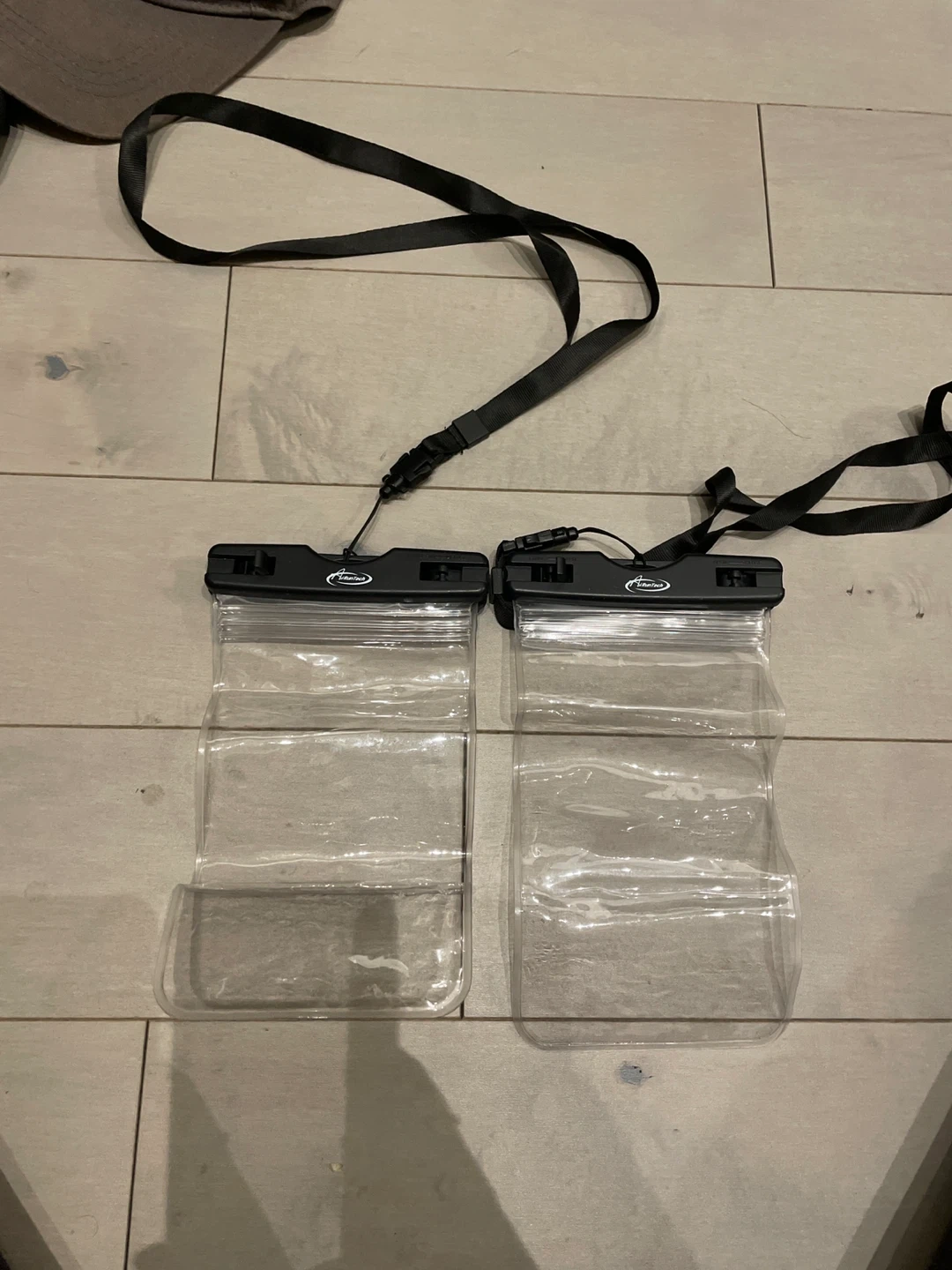 Selling two AquaTech waterproof phone pouches. They're perfect for keeping your phone safe and dry during water activities. Each pouch comes with a lanyard.