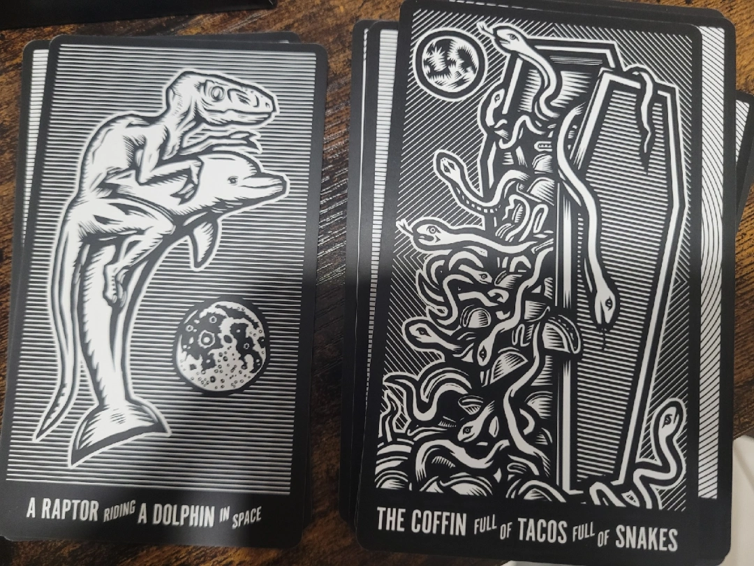 Selling a deck of Arcane Bullshit cards. It's a deck of pictorial channeling cards. The box describes it as an eternal, transformative power that pervades every element of daily life. perfect for your Haloween parties!