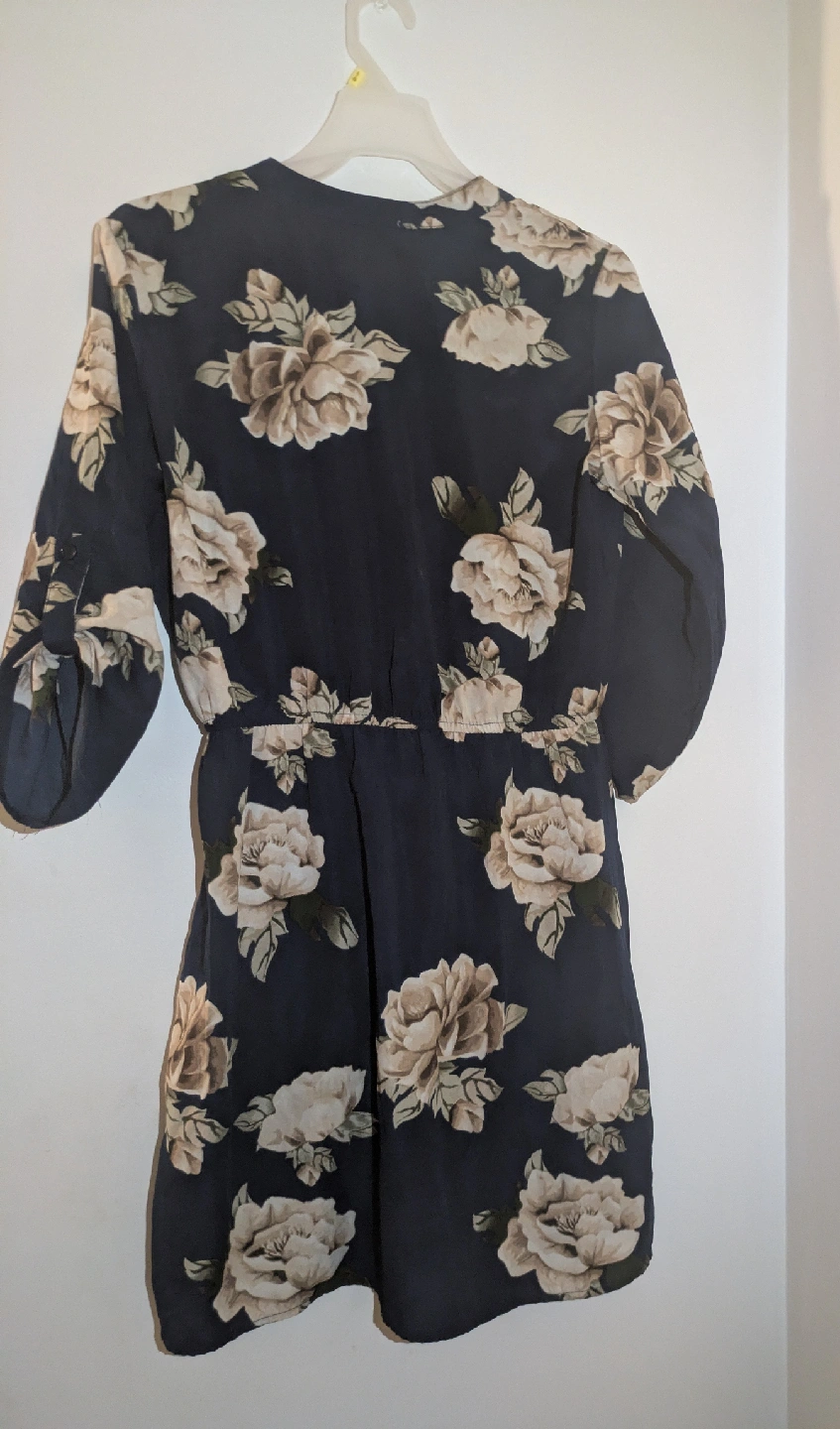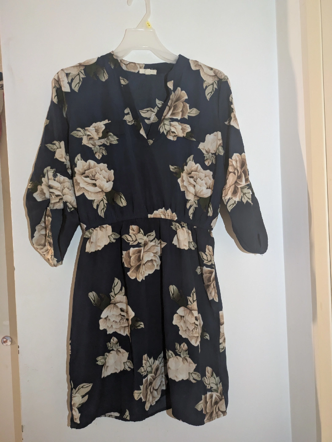 Cute floral midi dress, perfect for summer days or evenings out! It features a flattering V-neck and a comfortable elastic waist. The floral pattern is really pretty and unique