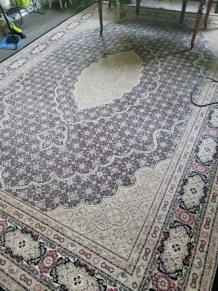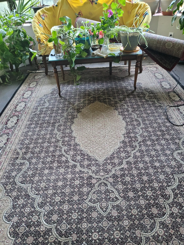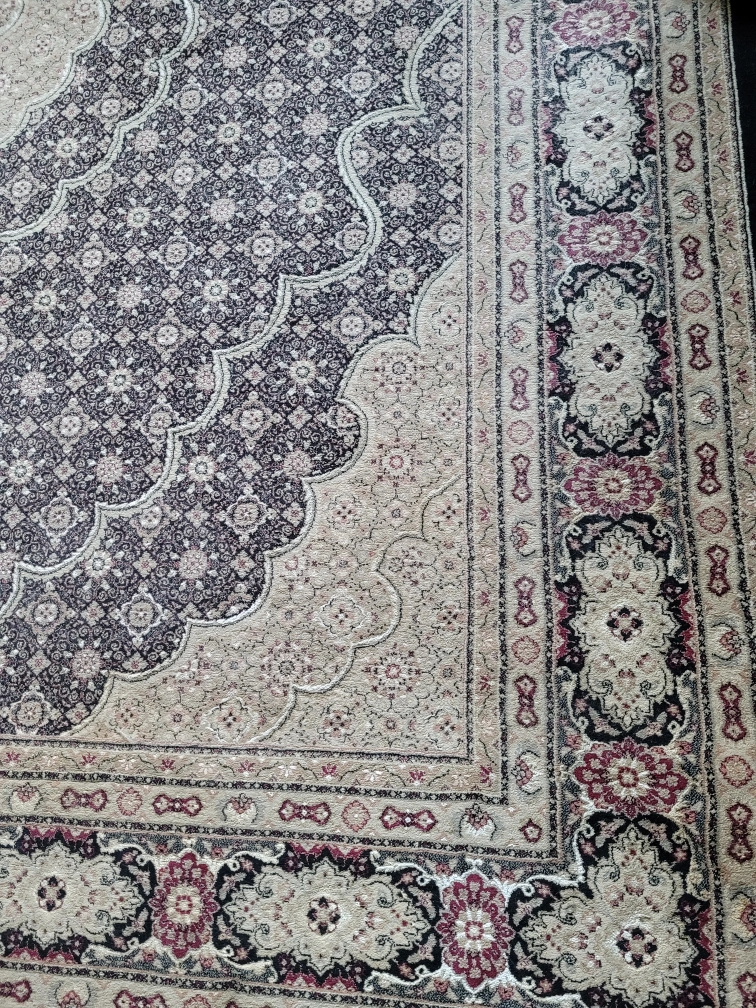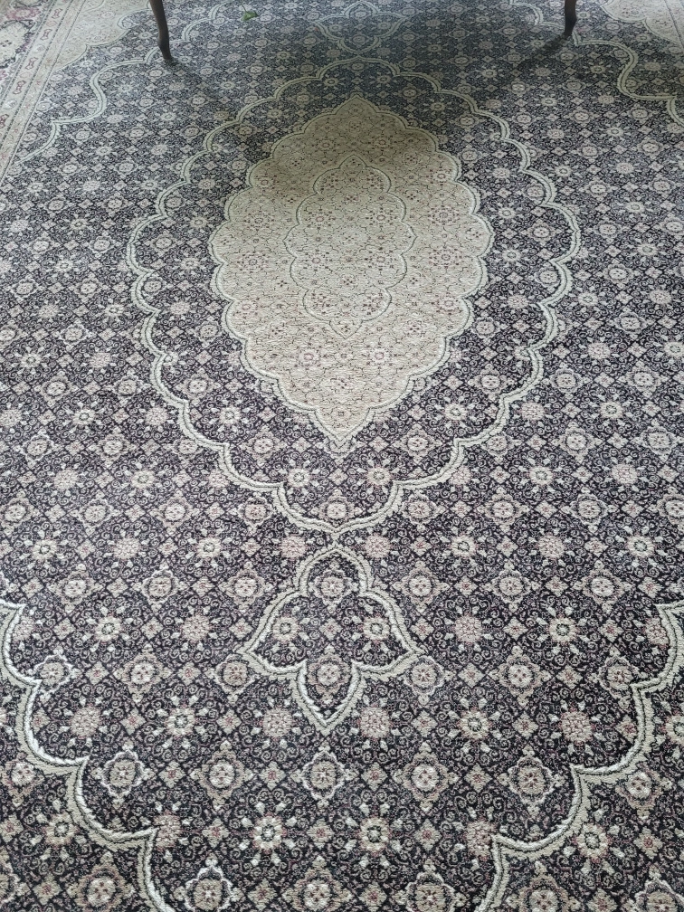 Selling a lovely area rug in a mix of black and beige tones. It's fireproof, and would look great in any living room or bedroom. It’s in good condition and ready for a new home!