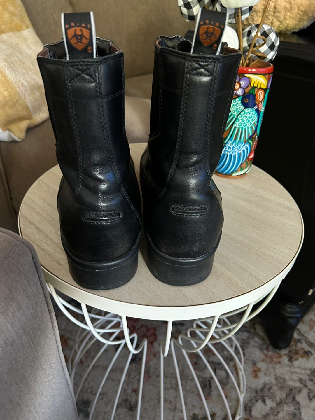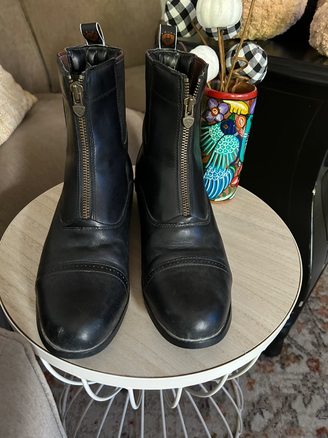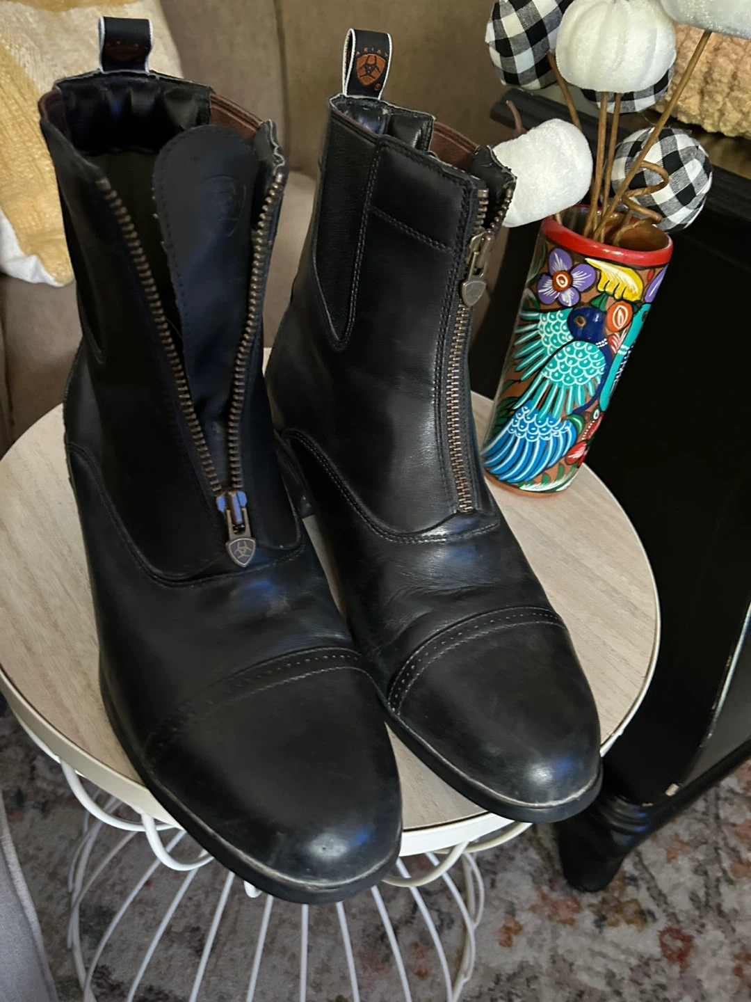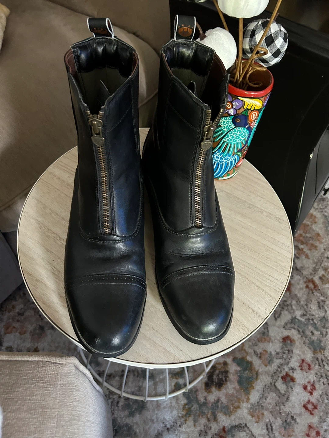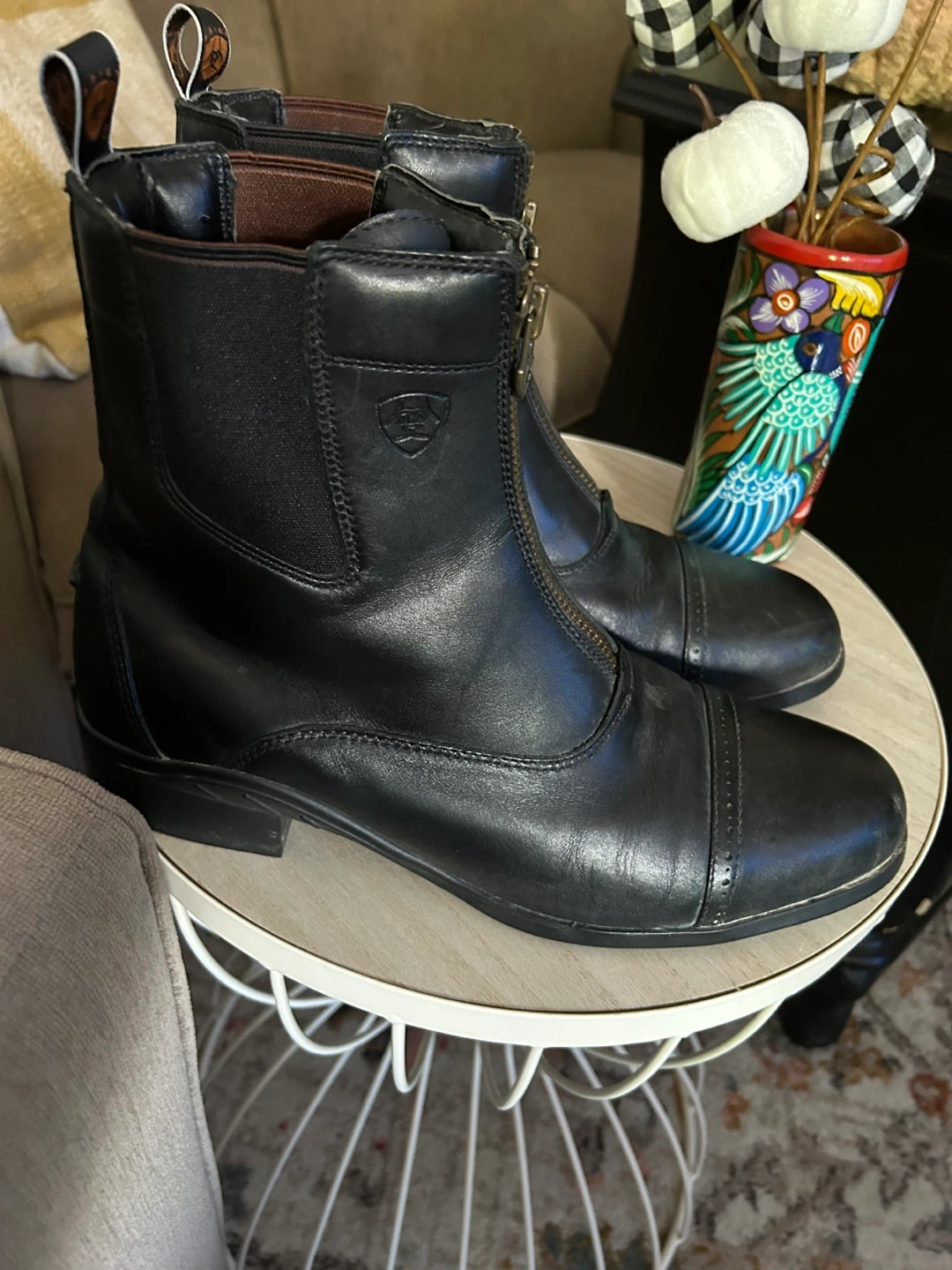 Selling a pair of Ariat paddock boots in black leather. They have a convenient zip-up front. Great for riding or everyday wear! Size 11. Almost new.